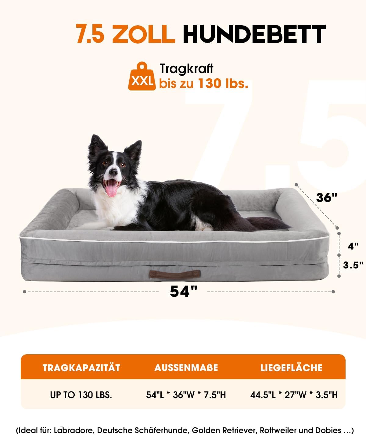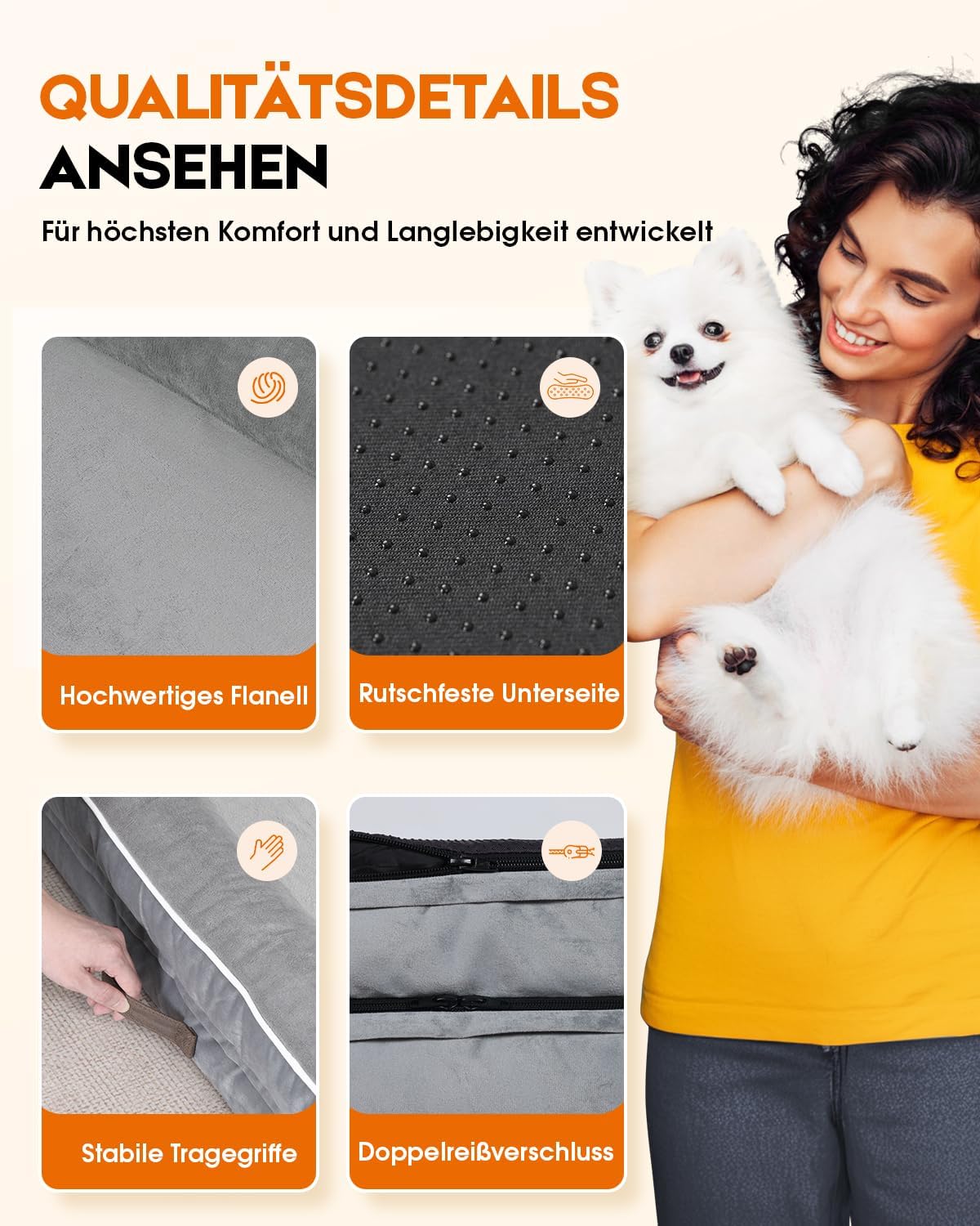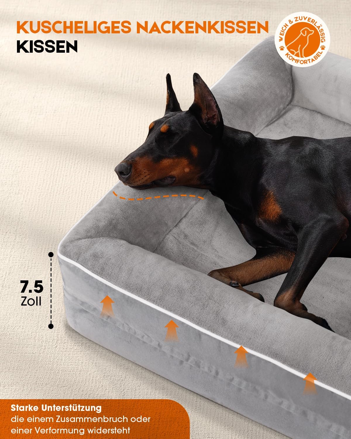 Ортопедично кучешко легло XXL, кошница за кучета, която може да се пере, с яйцевидна пяна, водоустойчив диван за кучета с нехлъзгаща се долна страна и четиристранна възглавница (светло сиво, 137 x 91 x 19 см)
