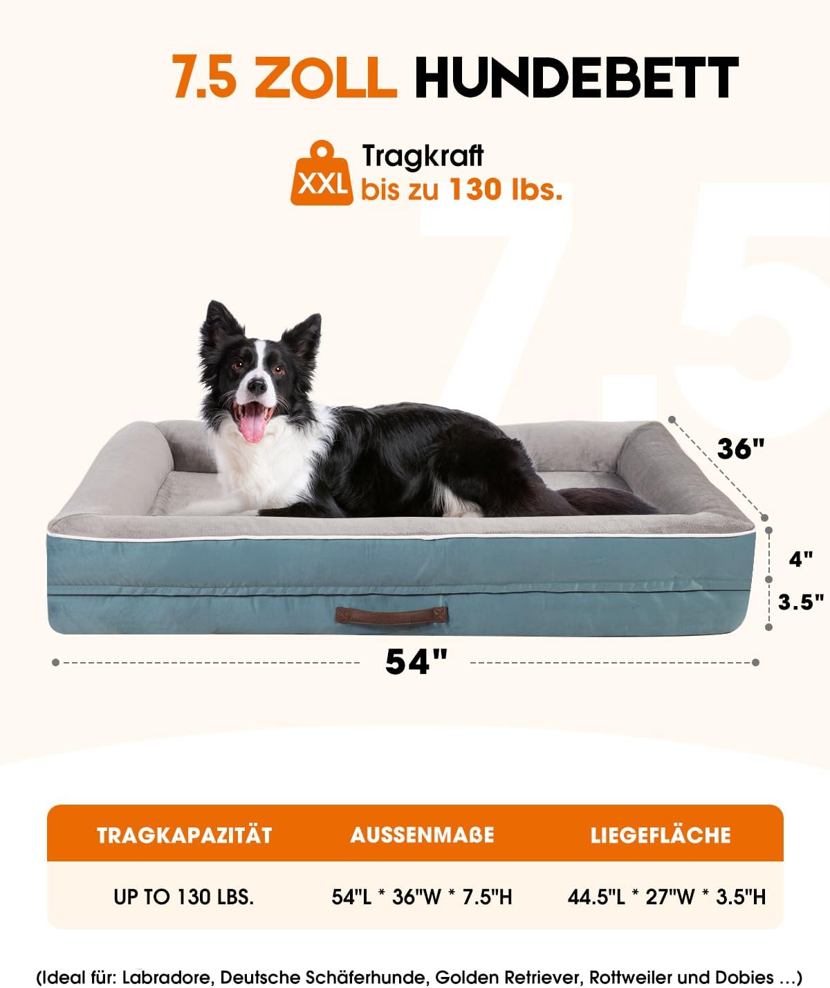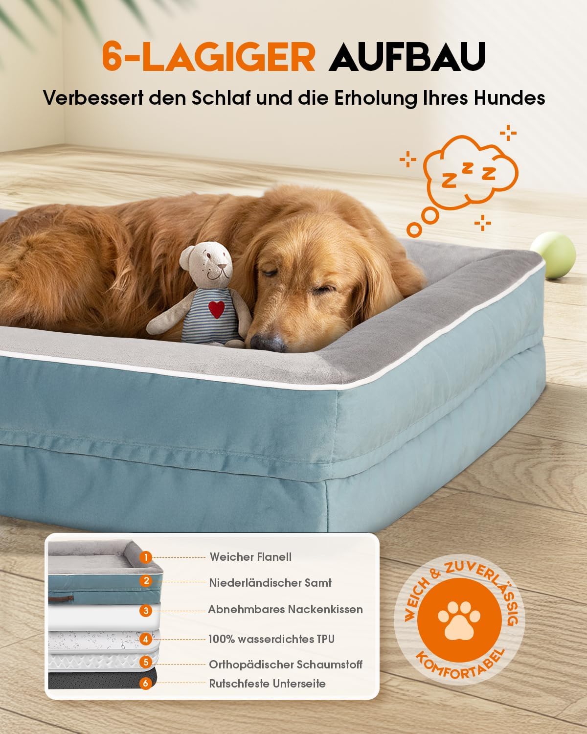 Ортопедично кучешко легло XXL, кошница за кучета, която може да се пере, с яйцевидна пяна, водоустойчив диван за кучета с неплъзгаща се долна страна и четиристранна възглавница (синьо, 137 x 91 x 19 см)