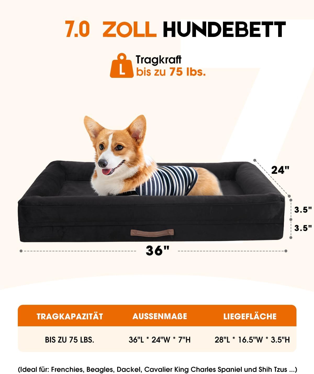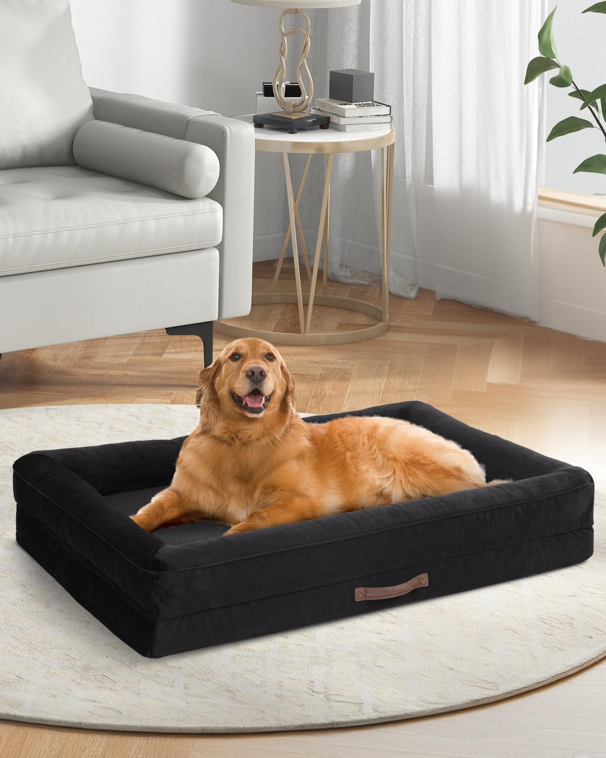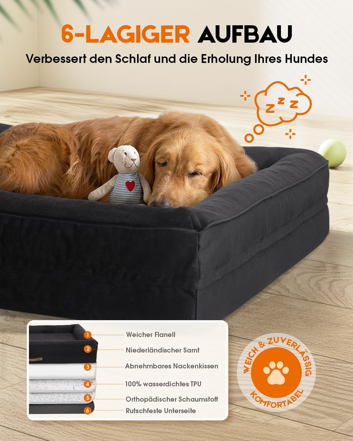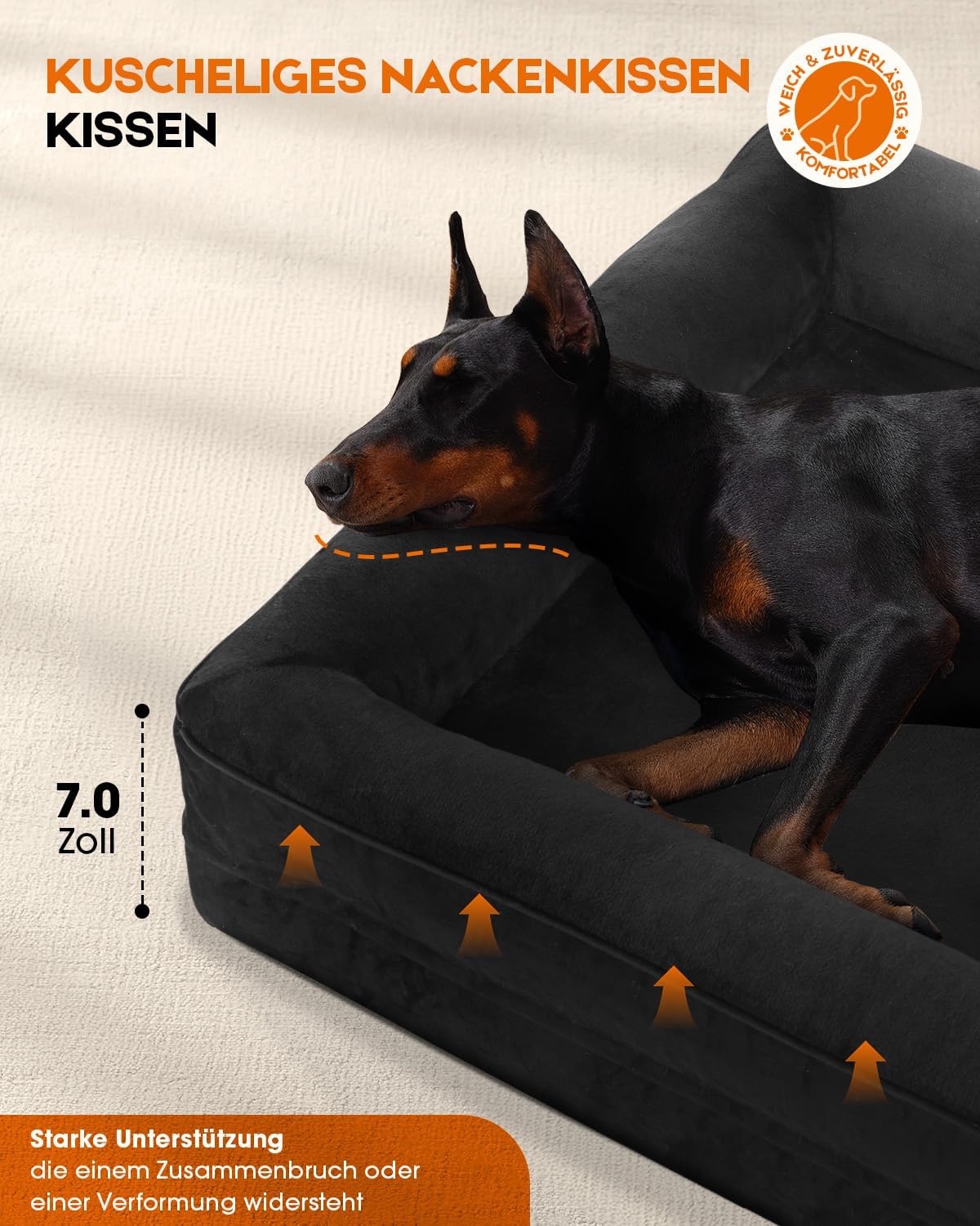 Ортопедично кучешко легло за големи кучета, кошница за кучета, която може да се пере, с яйцевидна пяна, водоустойчив диван за кучета с неплъзгаща се долна страна и четиристранна възглавница (черно, 91 x 61 x 18 см)