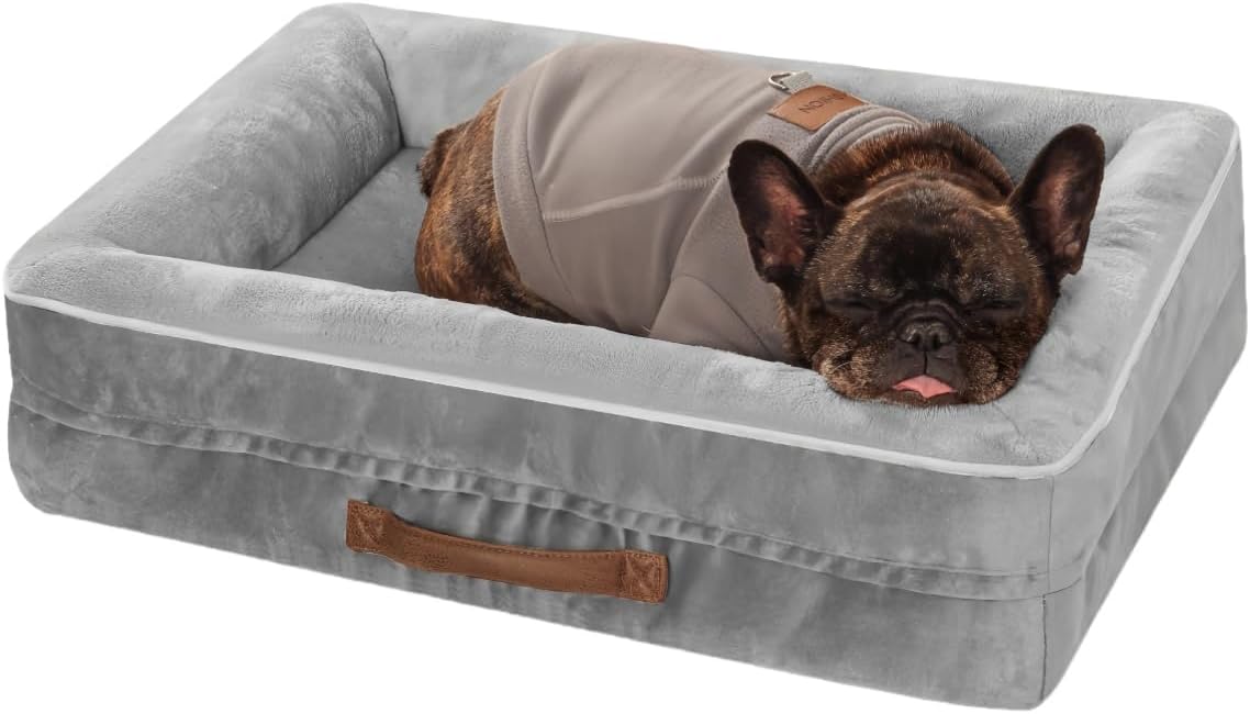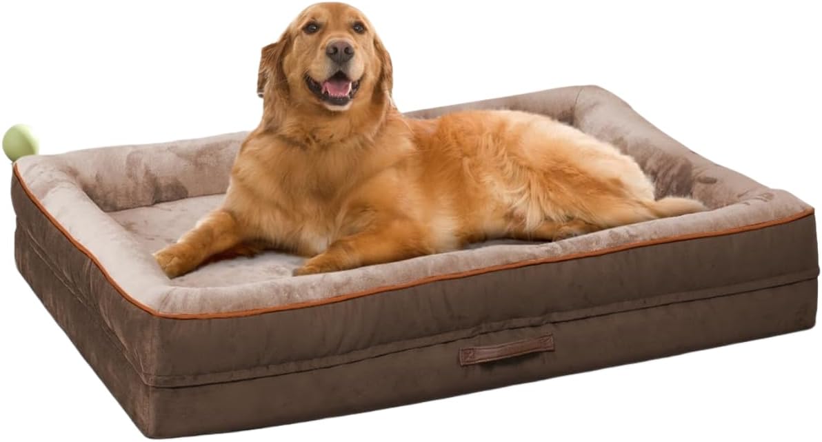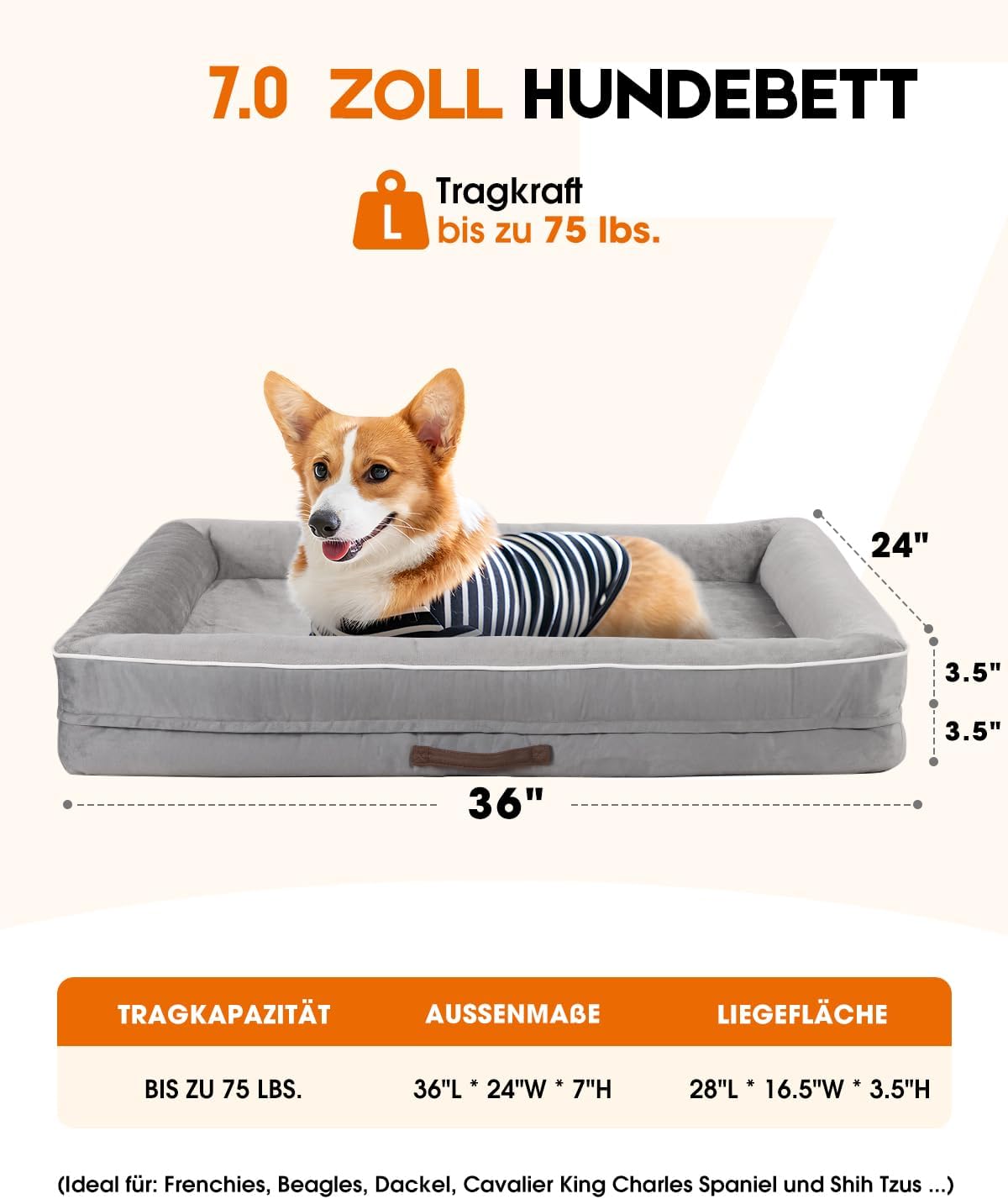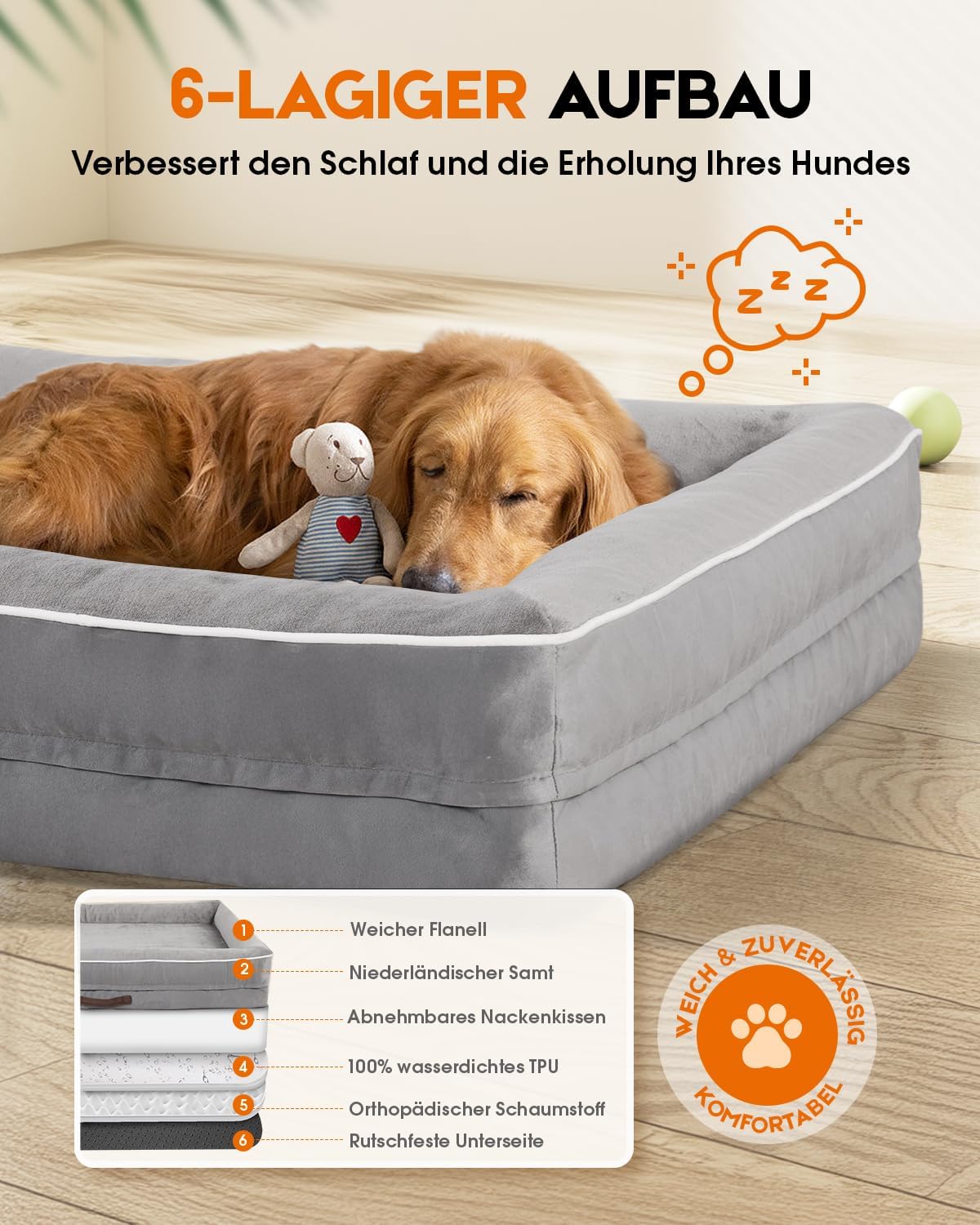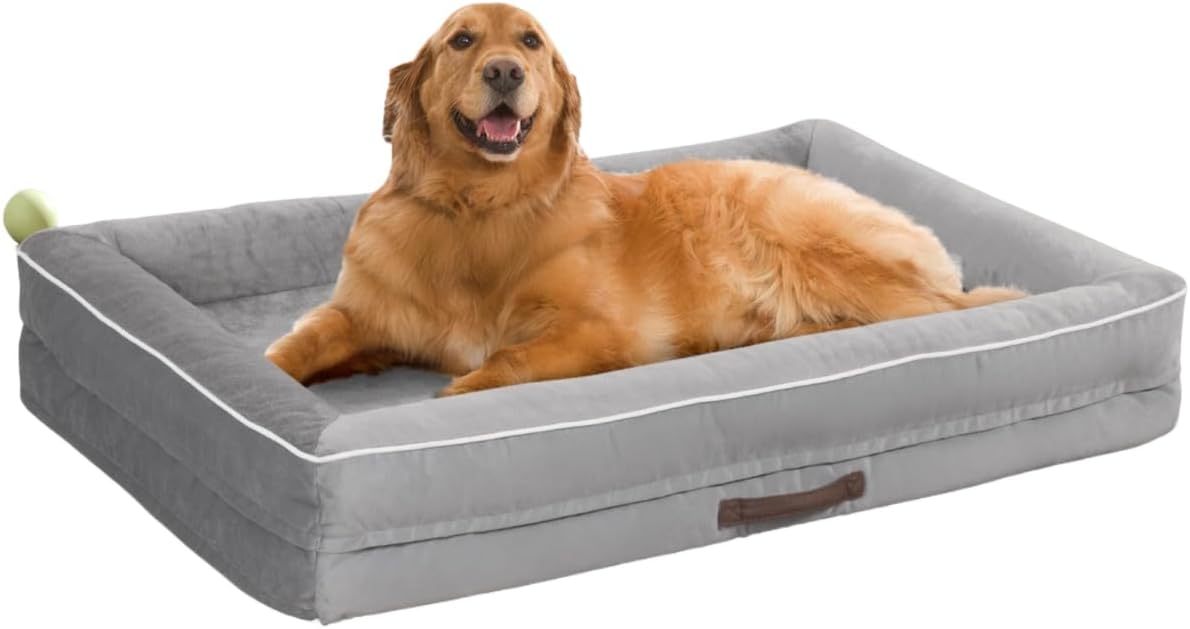 Ортопедично кучешко легло за големи кучета, кошница за кучета, която може да се пере, с яйцевидна пяна, водоустойчив диван за кучета с неплъзгаща се долна страна и четиристранна възглавница (светло сиво, 91 x 61 x 18 см)