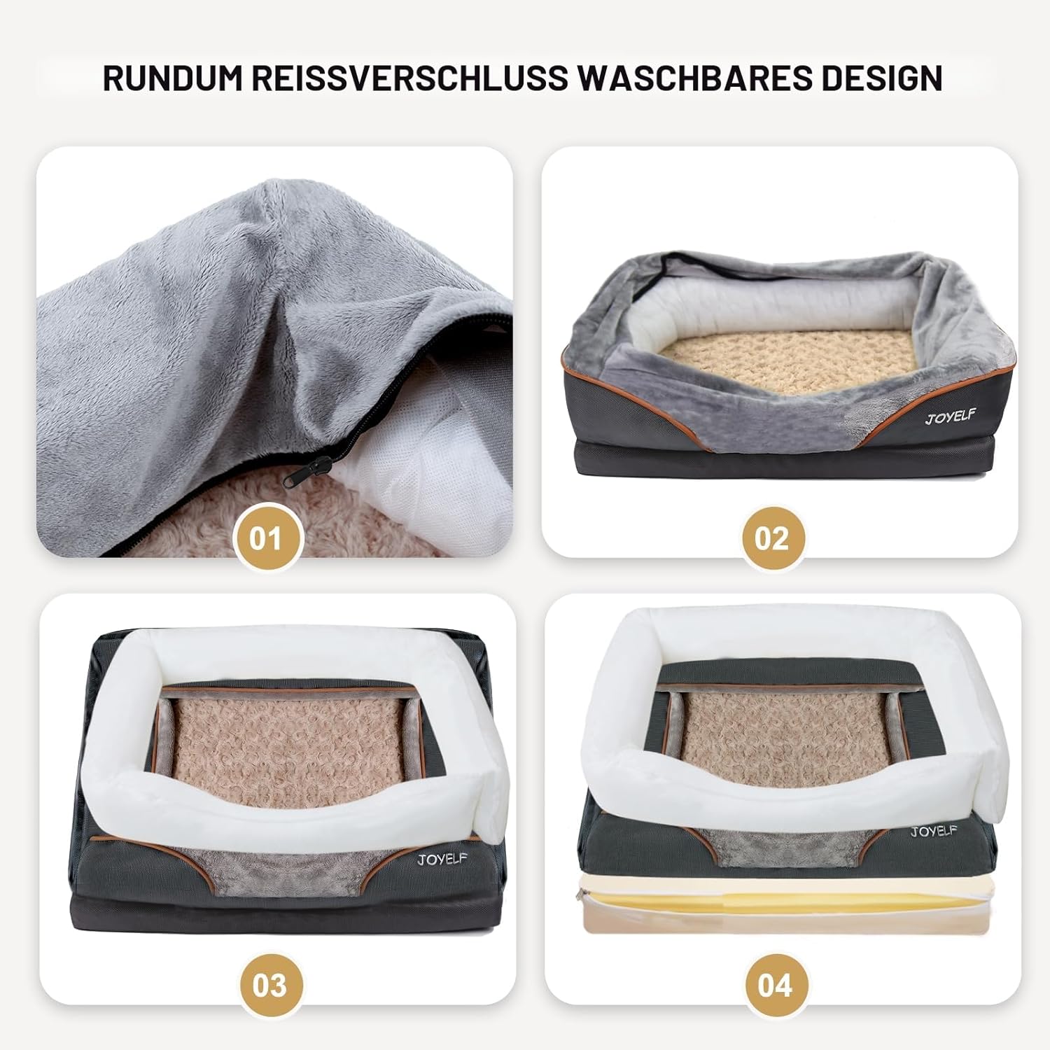 Ортопедично легло и диван за кучета JOYELF от мемори пяна със сваляем калъф, който може да се пере, и скърцаща играчка като подарък