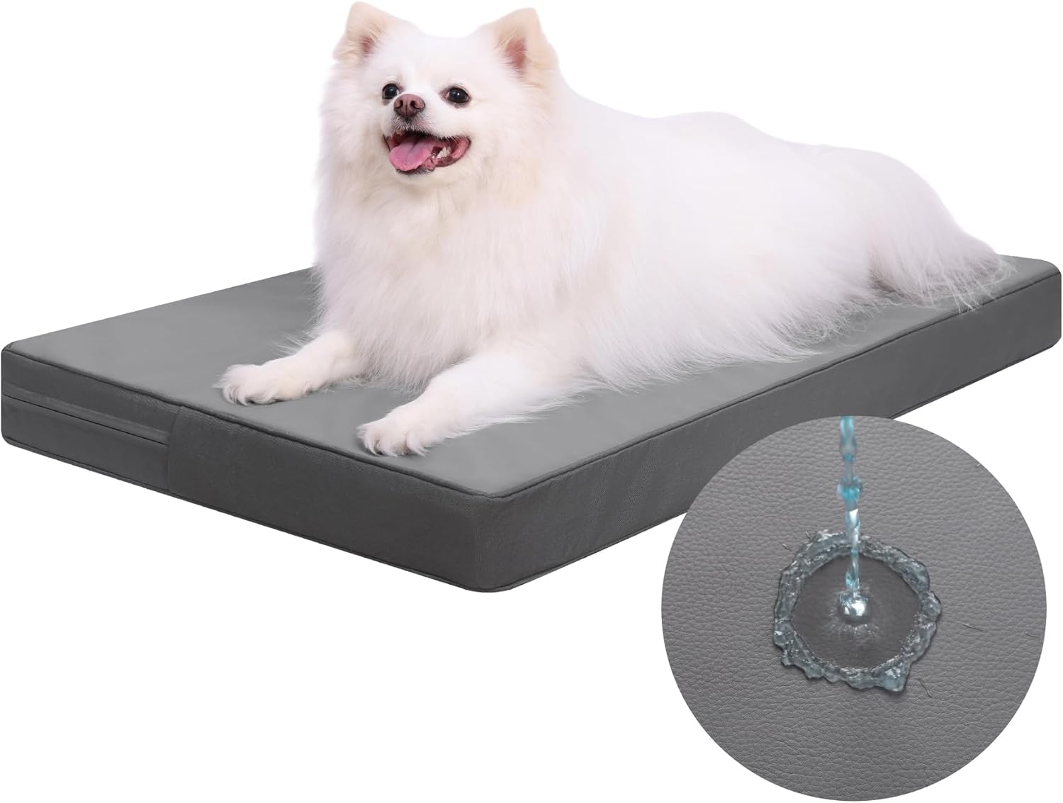 Ортопедично легло за големи кучета 104 x 68 см, свалящо се водоустойчиво покритие от изкуствена кожа, възглавница за кучета, матрак за големи кучета, удобен и охлаждащ за употреба на закрито и открито, сив