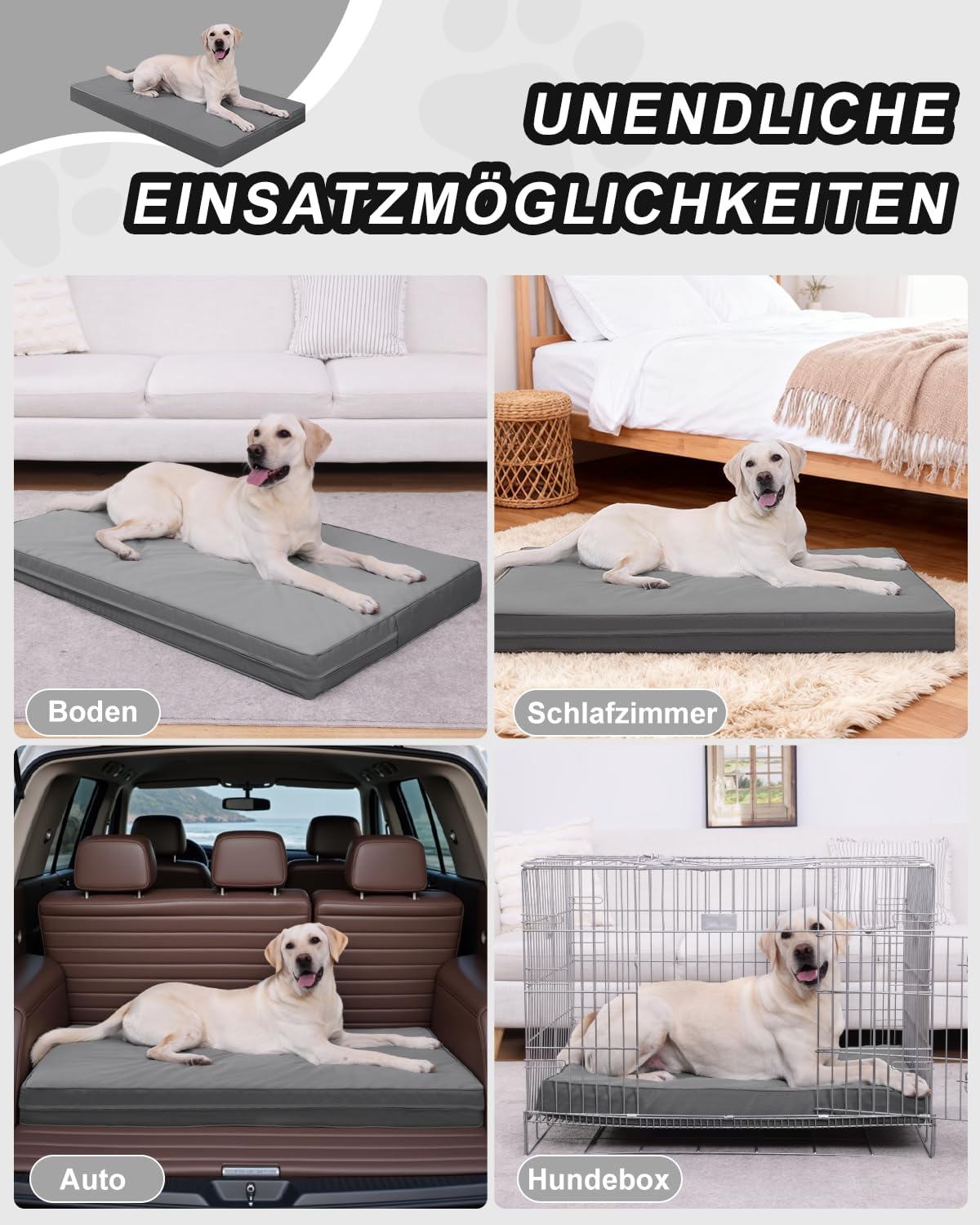 • Силна опора за спокоен сън: нашето кучешко легло с пълнеж от пяна с висока плътност с дебелина 8 см надеждно предпазва от студени подове и осигурява стабилна опора дори на тежки кучета. Здравата 25D пяна остава размерно стабилна дори след месеци употреба - идеално за кучешки легла за големи кучета, които се нуждаят от дълготраен комфорт. Тук вашият четириног приятел спи като на облак и има спокоен нощен сън.
