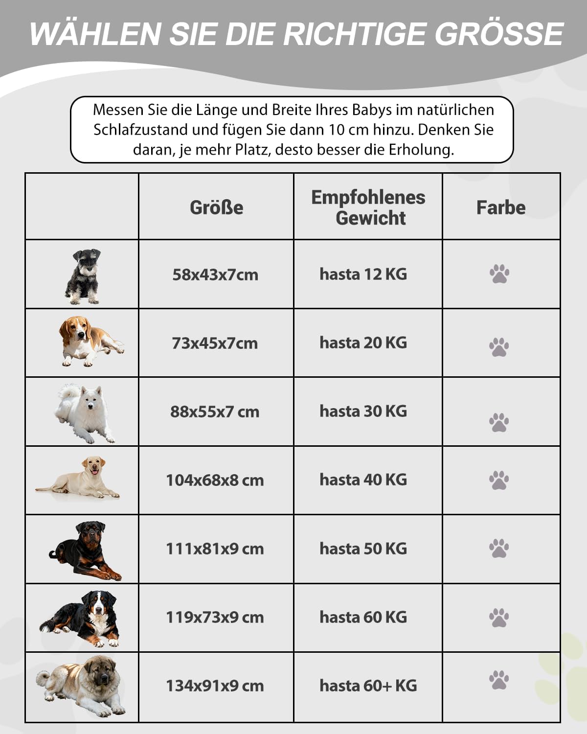 • РАЗМЕРИ: Това кучешко легло се предлага в няколко размера - изберете според размера и теглото на вашето куче. СЪВЕТИ ЗА ПЪРВА УПОТРЕБА: Поставете вакуумно опакованото кучешко легло в хоризонтално положение за 24-48 часа след разопаковане, така че пяната да се разгъне напълно. Скоро вашето куче ще открие новото си любимо място.