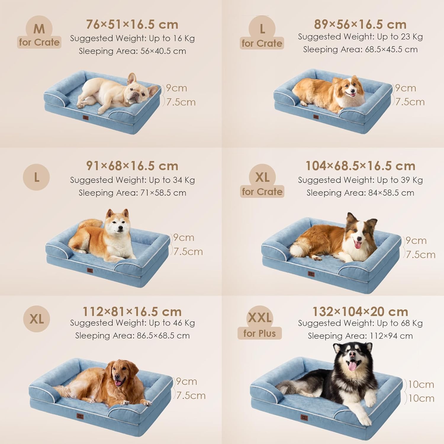 Ортопедично легло за големи кучета EHEYCIGA, кошница за кучета XL от мемори пяна, диван за кучета, който може да се пере, водоустойчив, неплъзгащ се, диван за кучета с висок ръб