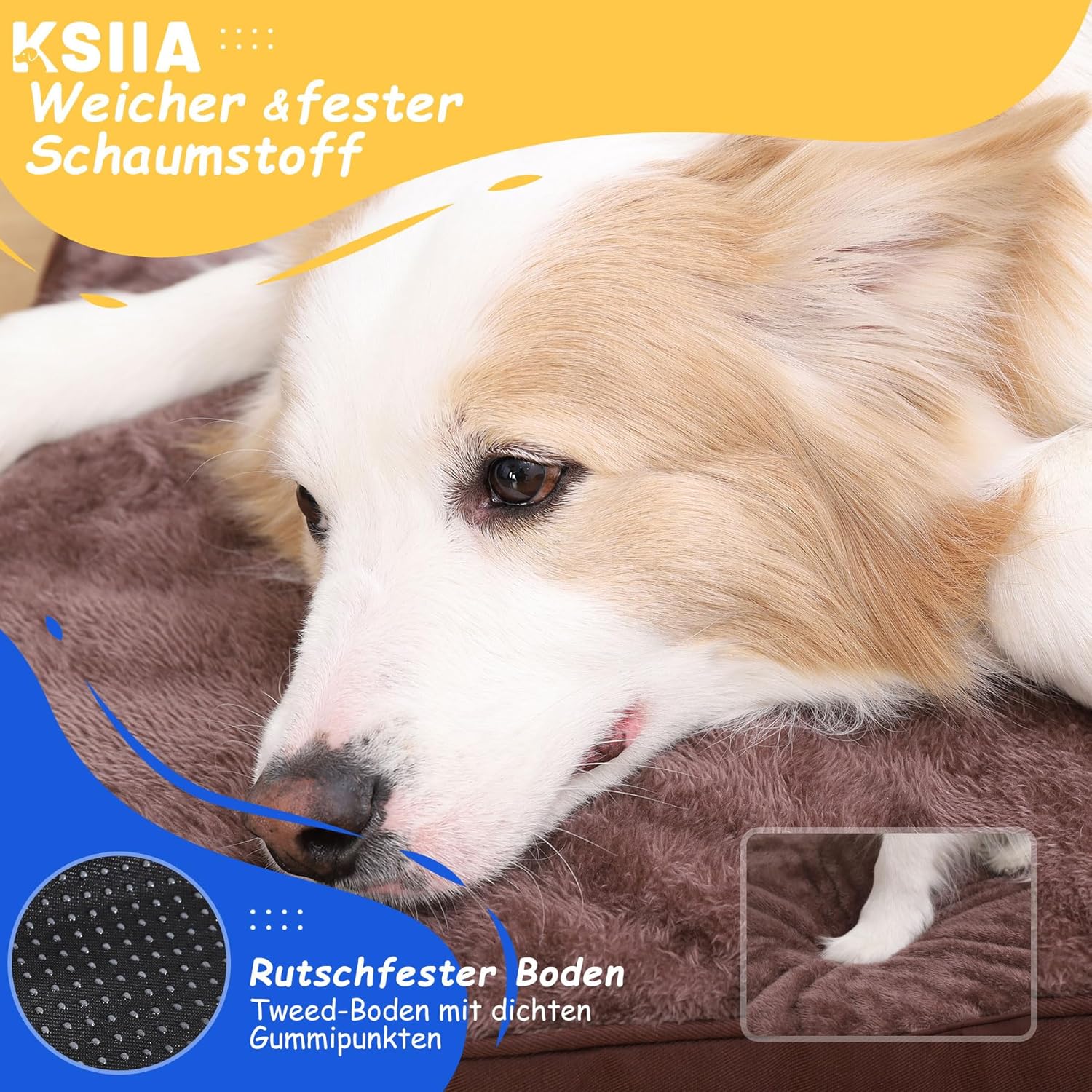 Ортопедично легло за големи кучета KSIIA, XL миеща се възглавница за кучета, пухкава постелка за кучета, матрак за кучета с подвижен капак в шоколадови бонбони, 105 x 70 x 8 см