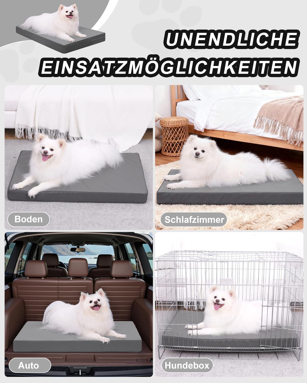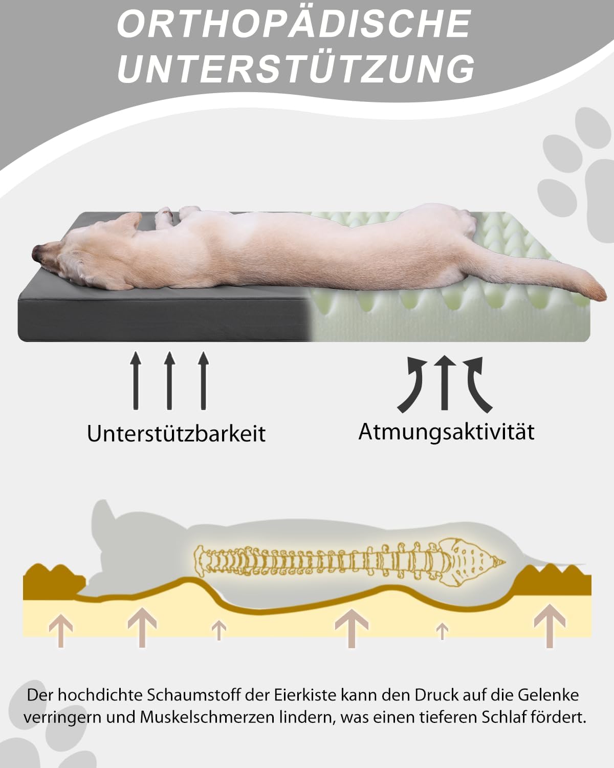• Силна опора за спокоен сън: нашето кучешко легло с пълнеж от пяна с висока плътност с дебелина 8 см надеждно предпазва от студени подове и осигурява стабилна опора дори на тежки кучета. Здравата 25D пяна остава размерно стабилна дори след месеци употреба - идеално за кучешки легла за големи кучета, които се нуждаят от дълготраен комфорт. Тук вашият четириног приятел спи като на облак и има спокоен нощен сън.