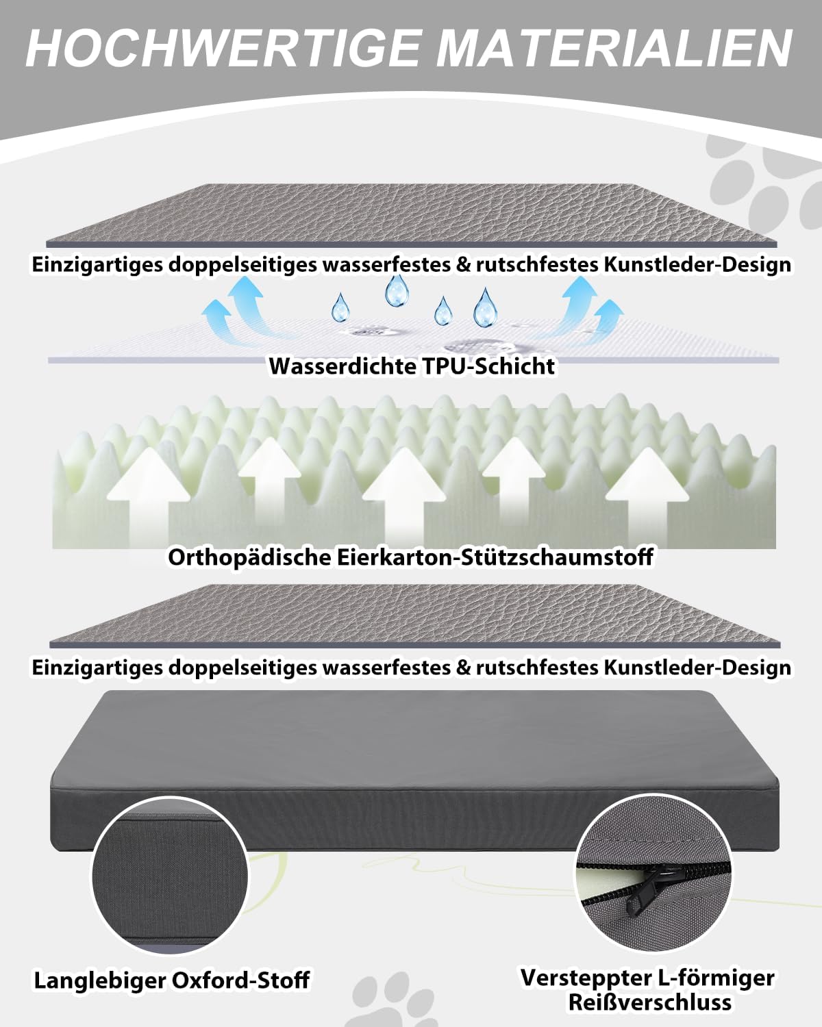 • Лесно почистване: устойчивата на косъм кучешка постелка от изкуствена кожа отблъсква козината и мръсотията - дори петната изчезват за нула време! Със сваляем калъф и скрит L-образен цип (високо качество, лесен за употреба) за бързо отстраняване. Основно почистване? Покривало в пералня - Забележка: не сушете на палещо слънце! Сушете на ниска температура или оставете да изсъхне на добре проветриво място.
