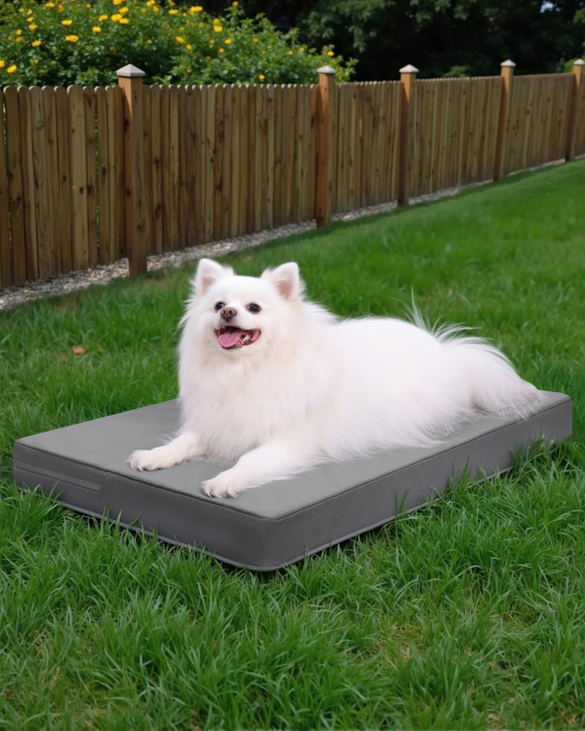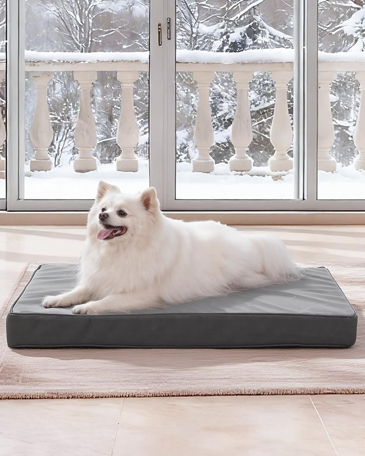 Ортопедично легло за кучета 58 x 43 см, сваляем водоустойчив калъф от изкуствена кожа, възглавница за кучета, матрак за кучета, удобен и охлаждащ за употреба на закрито и открито, сив