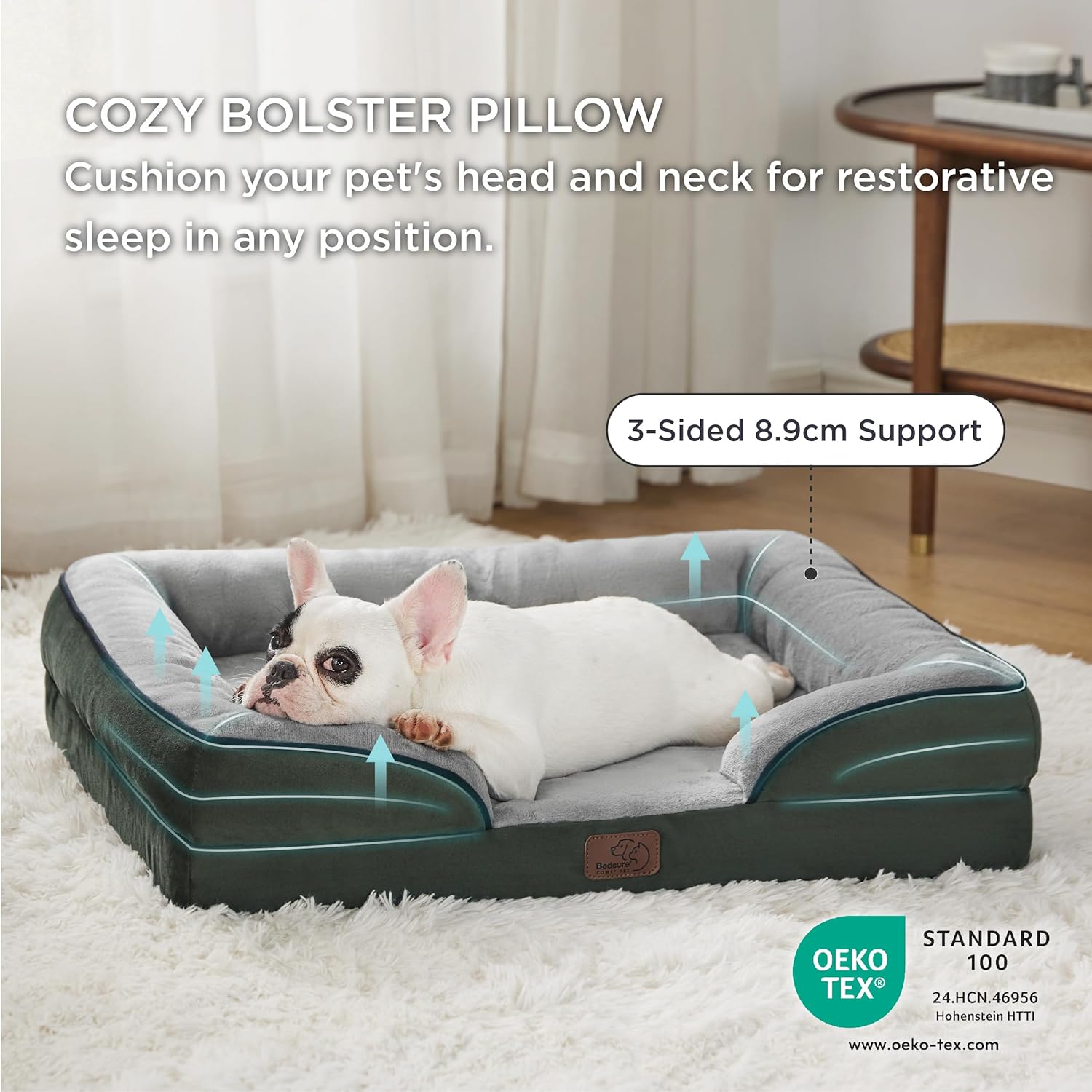 Ортопедично легло за кучета BEDSURE, ергономичен диван за кучета, 71 x 58 см, кушетка за кучета с пяна от картонена кутия за яйца за малки кучета, миеща се, неплъзгащи се легла за кучета, елхово зелено