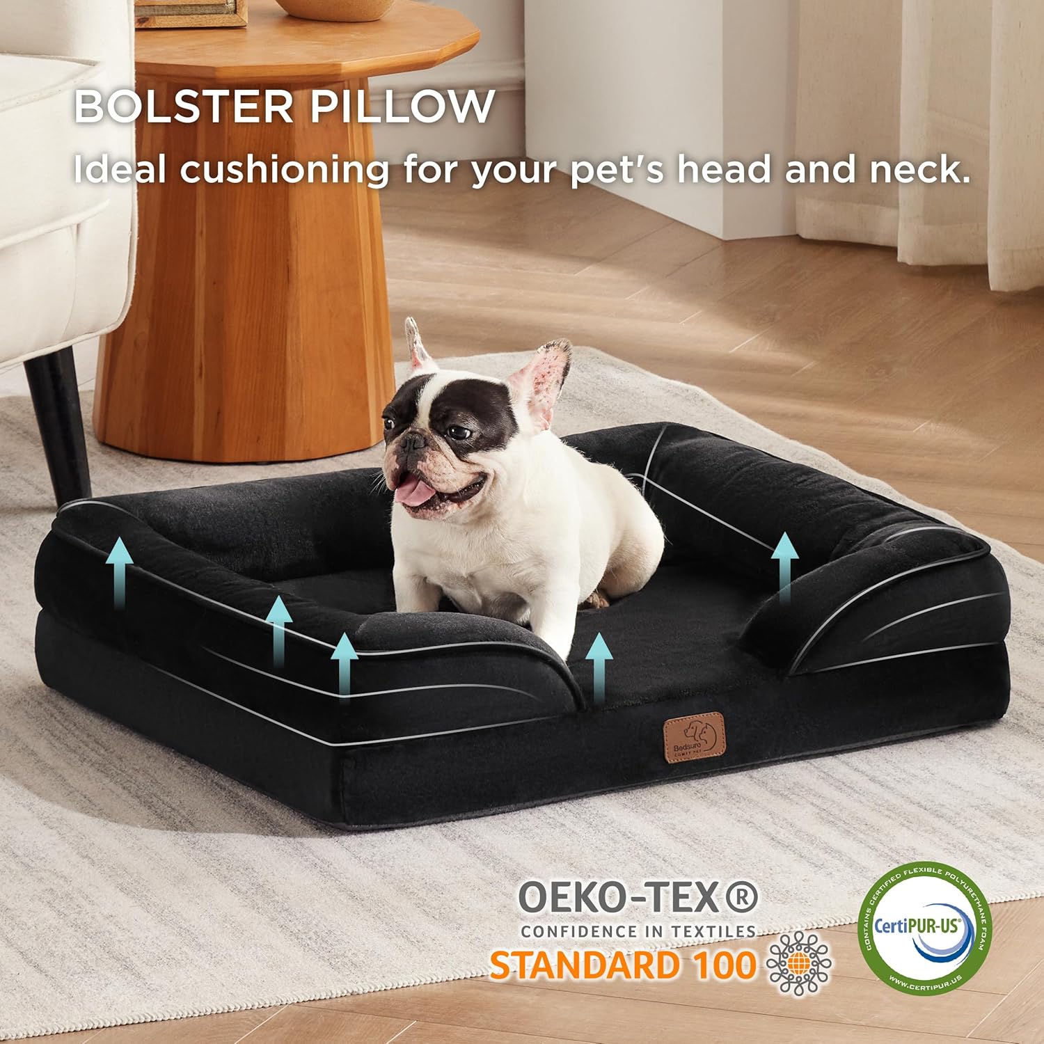 Ортопедично легло за кучета BEDSURE, ергономичен диван за кучета, 71 x 58 см, кушетка за кучета с пяна от картонена кутия за яйца за малки кучета, може да се пере, неплъзгащи се легла за кучета, черно