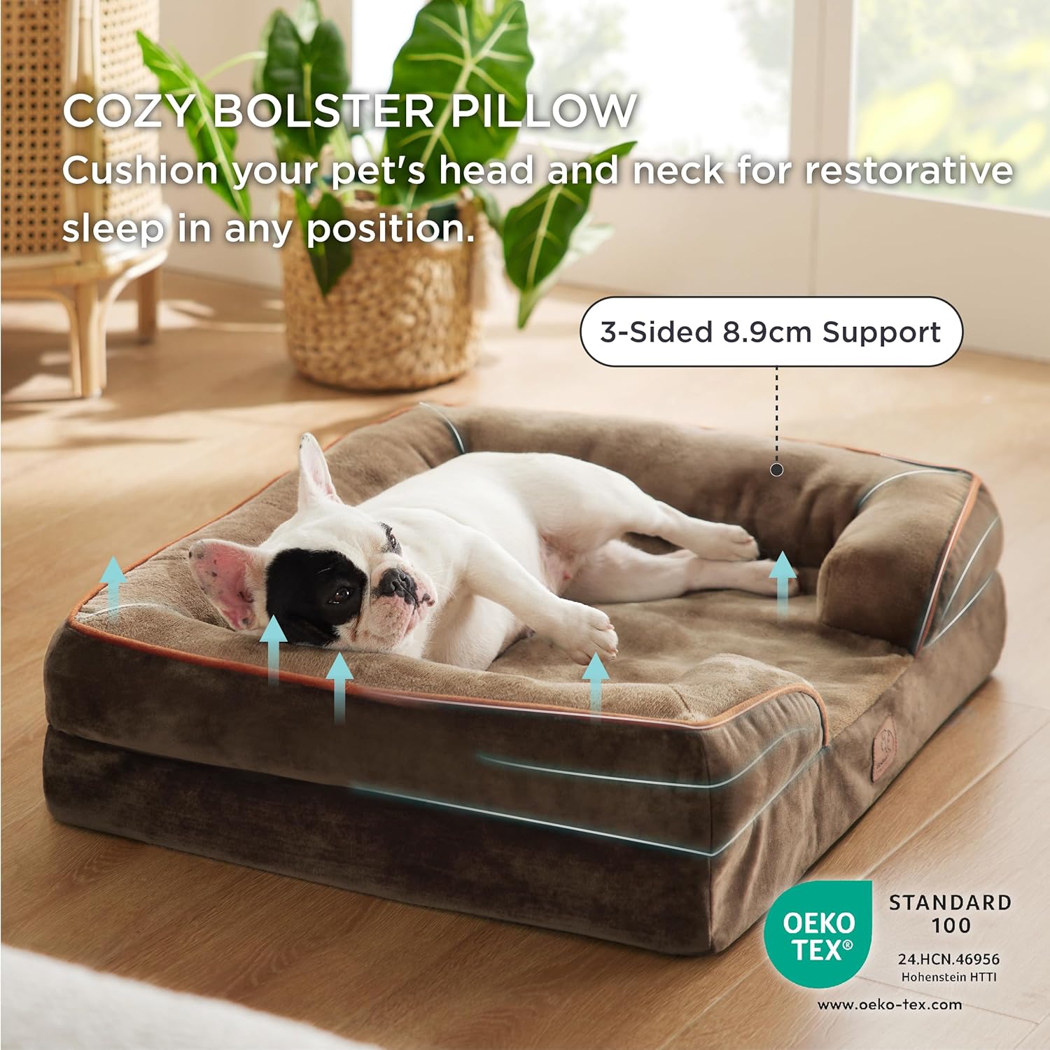 Ортопедично легло за кучета BEDSURE, ергономичен диван за кучета, 71 x 58 см, кушетка за кучета с пяна от картонена кутия за яйца за малки кучета, може да се пере, неплъзгащи се легла за кучета, кафяво