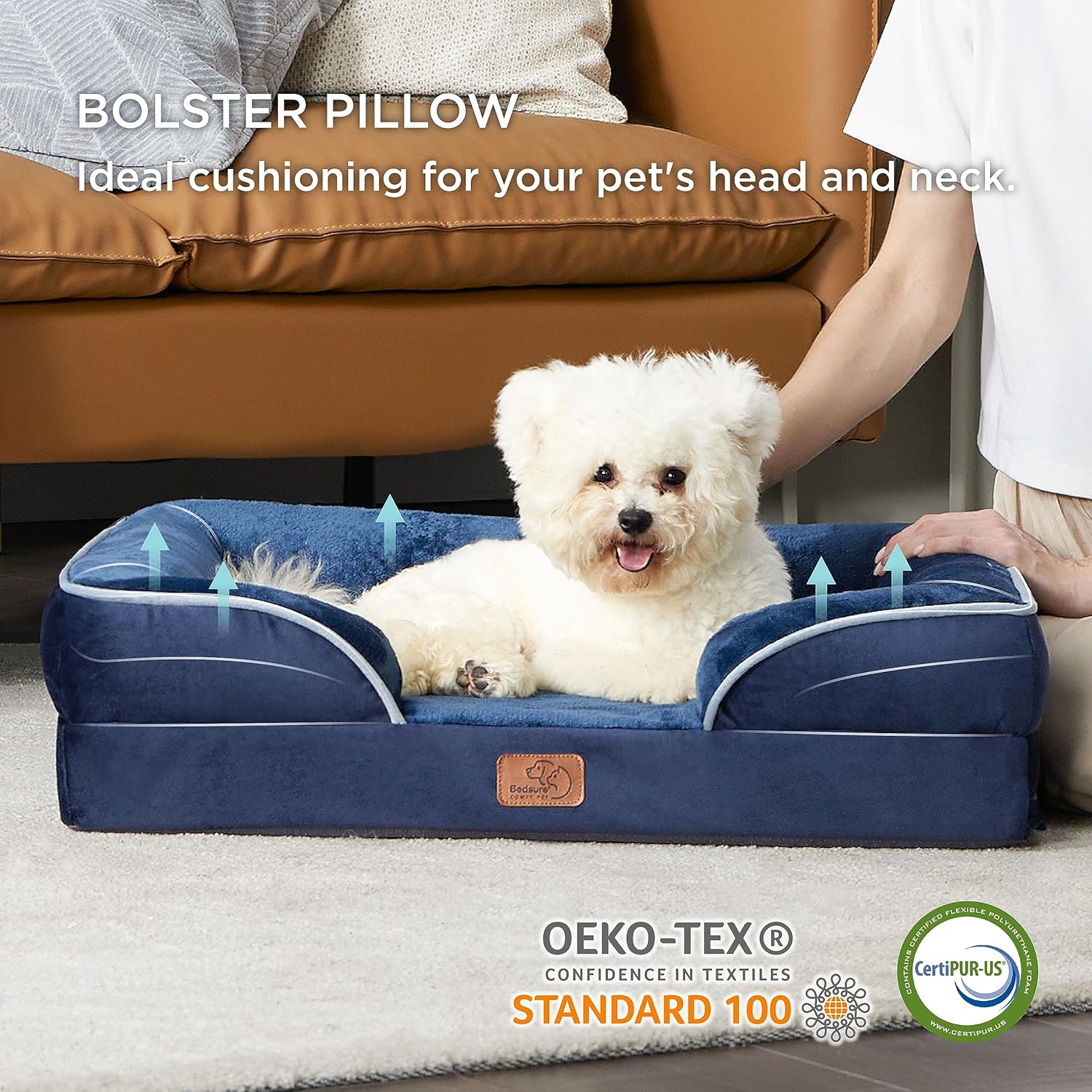 • Високият ръб от 3 страни и противоплъзгащото покритие на дивана за кучета дават на вашия домашен любимец чувство за сигурност.