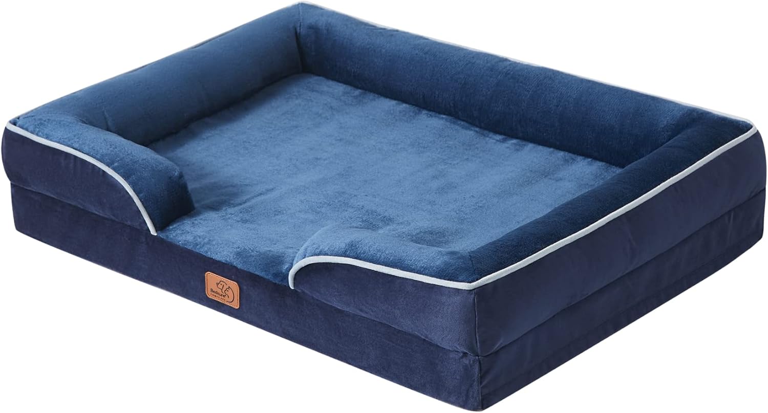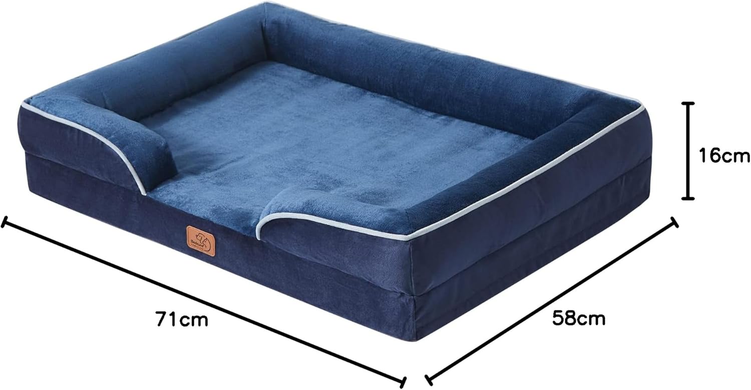 Ортопедично легло за кучета BEDSURE, ергономичен диван за кучета, 71 x 58 см, кушетка за кучета с пяна от картонена кутия за яйца за малки кучета, може да се пере, неплъзгащи се легла за кучета, тъмносиньо