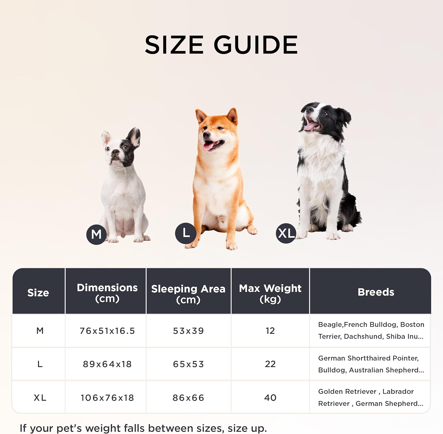 • Ортопедична опора: изпитайте перфектната комбинация от нашите два специални материала. Мемори пяната с висока плътност осигурява облекчаване на натиска с опора за ставите, докато нашата иновативна пяна тип „картон за яйца“ разпределя теглото равномерно. Тази хармонична комбинация от пухкави материали предлага оптимален баланс между мекота и стабилност. Вашият домашен любимец гарантирано ще се наслади на най-добрия кучешки диван - специално проектиран за дълбок и спокоен сън.