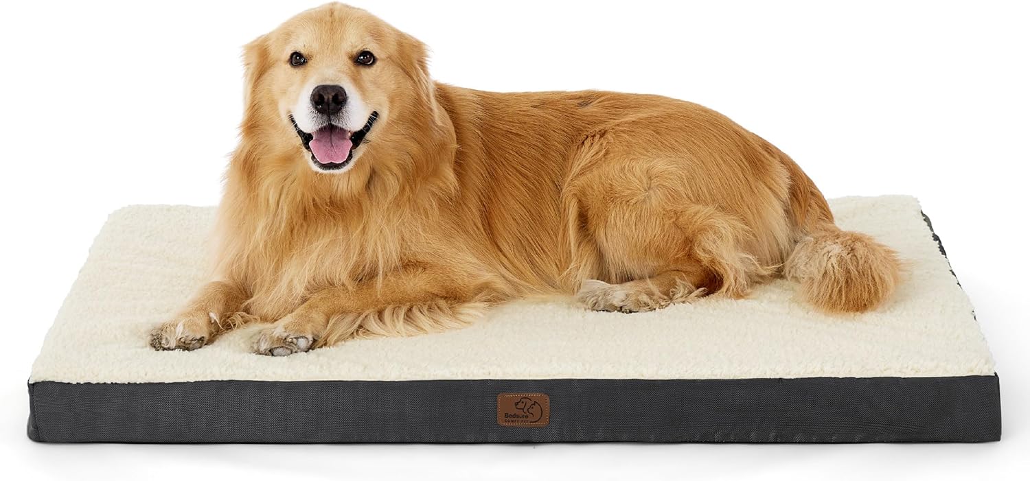 The Bedsure Convoluted Foam Orthopaedic Dog Bed has been designed in a rectangular shape to provide your pets with the correct support for an average dog and keep them cool in those hot months. High density foam provides long lasting comfort and relieves pain, especially for puppies or old pets. Take Bedsure Dog Bed home, let your loved ones jump on the bed and put the most satisfied expression on the little face.