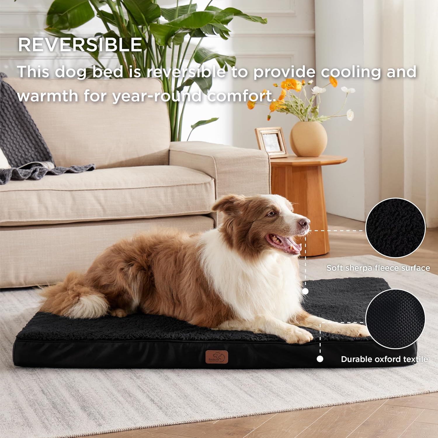 The Bedsure Convoluted Foam Orthopaedic Dog Bed has been designed in a rectangular shape to provide your pets with the correct support for an average dog and keep them cool in those hot months. High density foam provides long lasting comfort and relieves pain, especially for puppies or old pets. Take Bedsure Dog Bed home, let your loved ones jump on the bed and put the most satisfied expression on the little face.