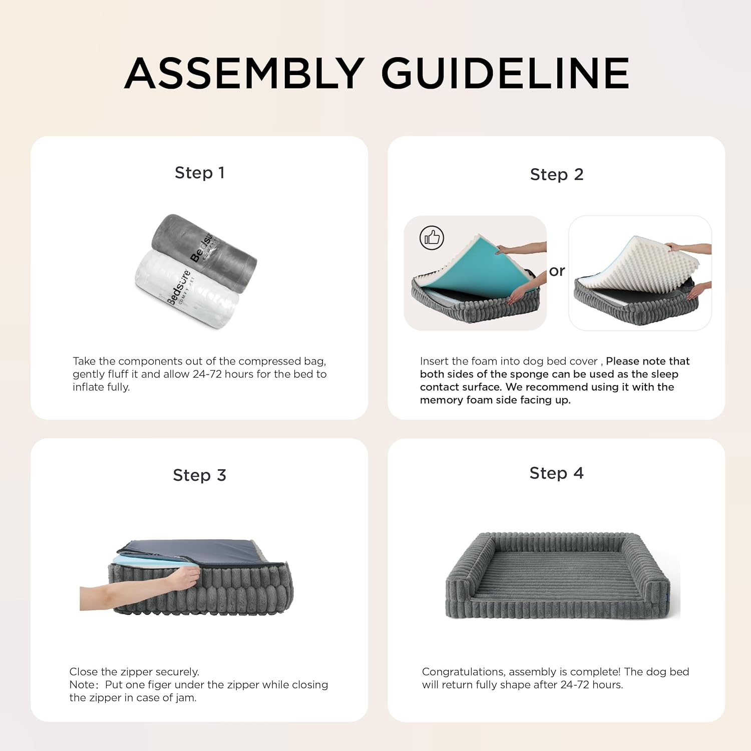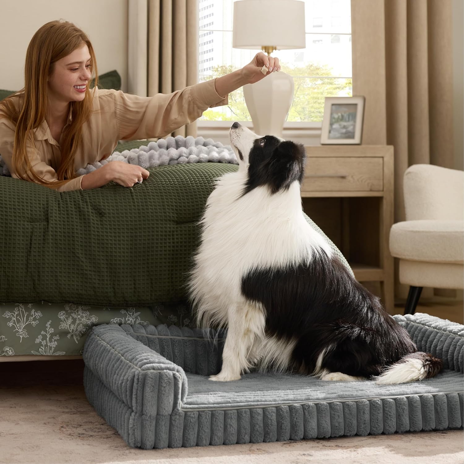 Ортопедично легло за кучета BEDSURE за големи кучета - 89 x 64 x 18 см, водоустойчив диван за кучета с мемори пяна и пяна от картонена кутия за яйца, перащ се и свалящ се калъф за шнур, диван за кучета, сив