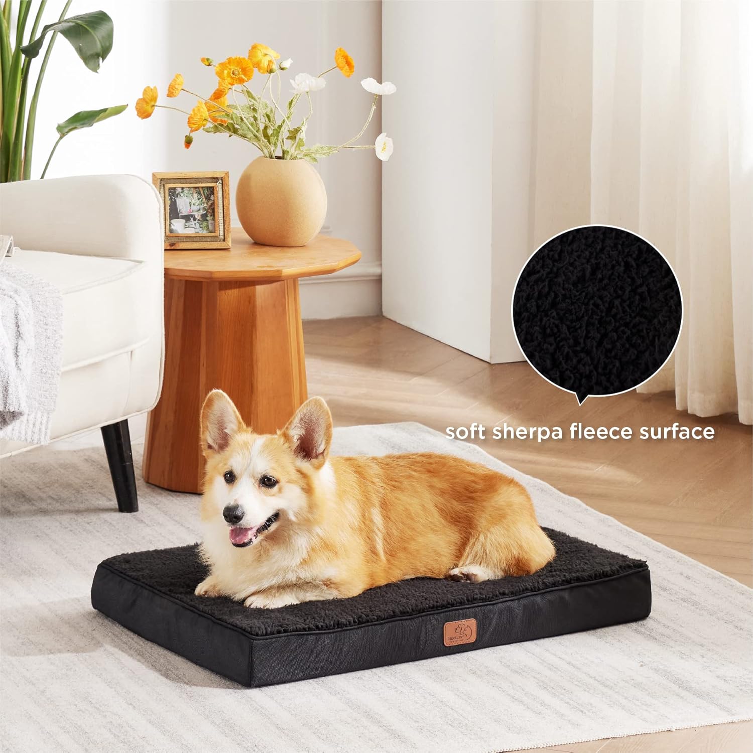 The flat surface is easy for older pets to find and fits perfectly in most dog crates, cars or any room of the house.