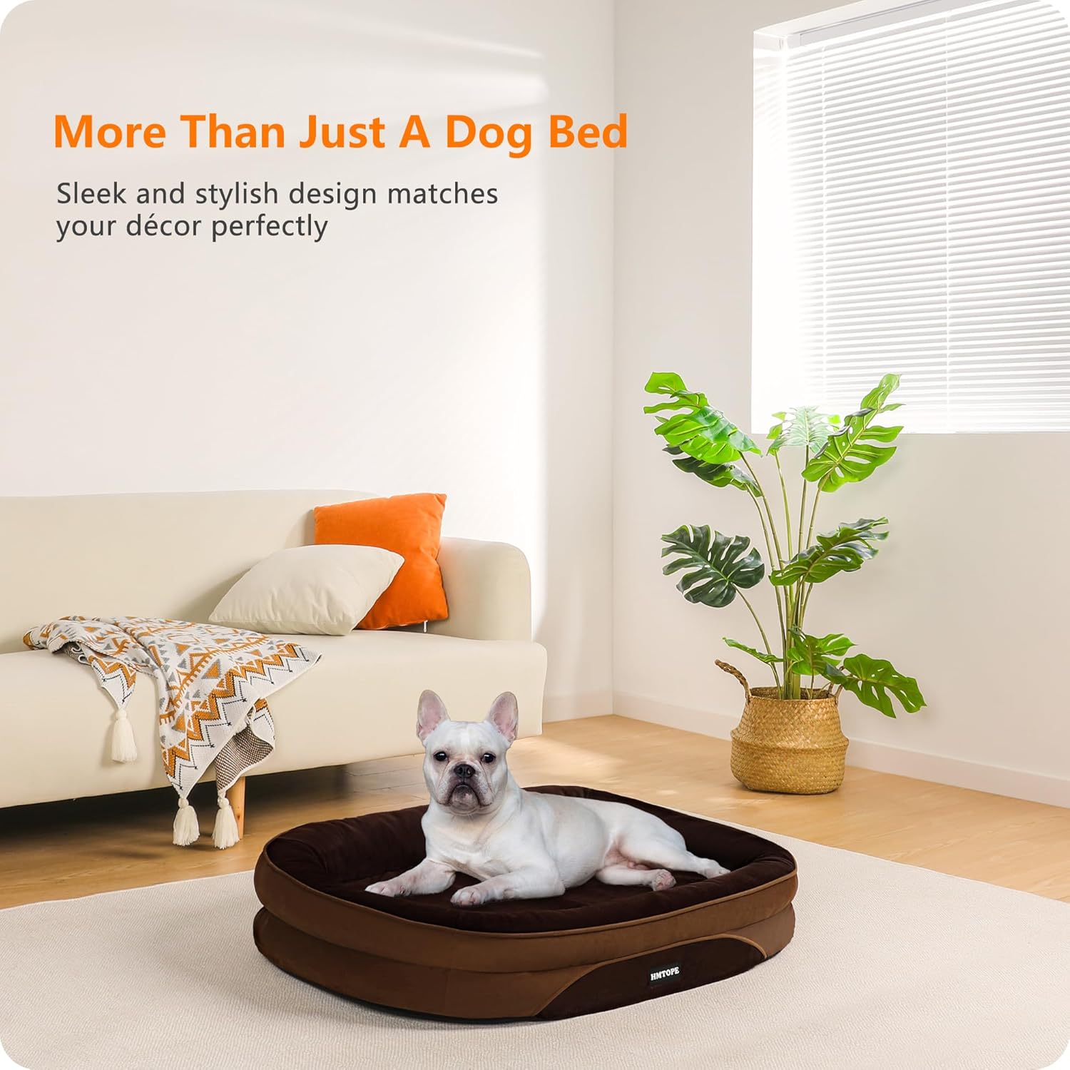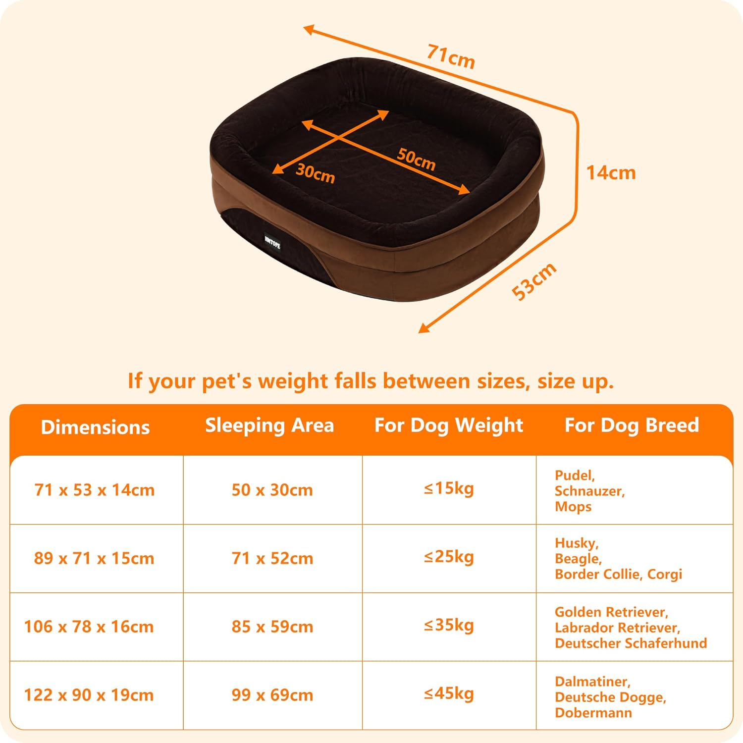 Ортопедично легло за кучета, диван за кучета, четиристранна възглавница, неплъзгаща се долна страна, кошница за кучета, сваляема и може да се пере, малки кучета, 71 x 53 x 14 см, кафяво