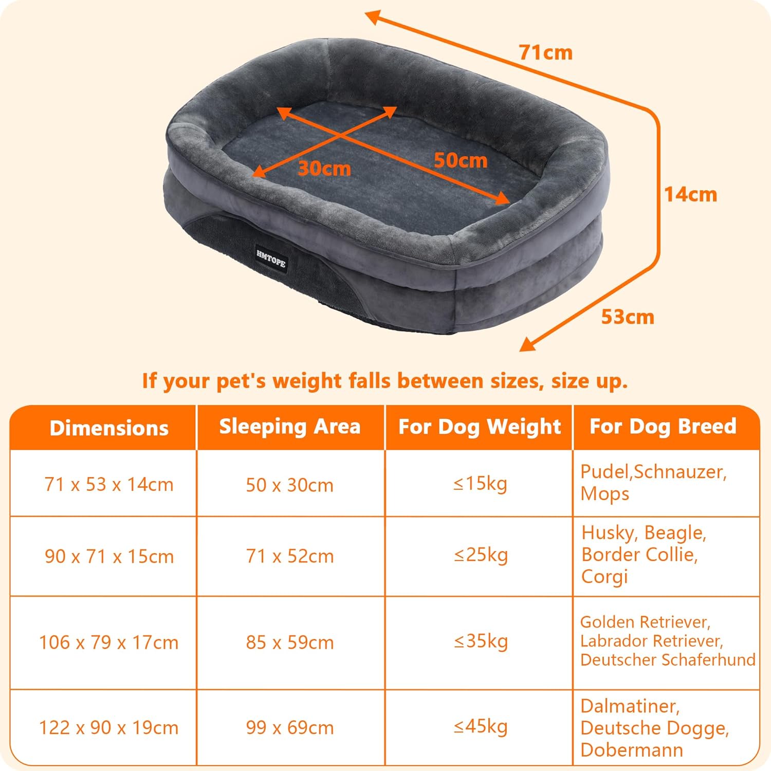 • ВИСОКОКАЧЕСТВЕН МАТЕРИАЛ Нашето ортопедично легло за кучета е пълно с пяна от картонена кутия за яйца, която осигурява по-голяма мекота и опора в сравнение с конвенционалните гъбени легла. Пълният и дебел пълнеж е голям, пухкав и много дишащ. Възглавницата с дебелина 10 см осигурява равномерно разпределение на теглото и осигурява комфорт за ставите на вашето куче.