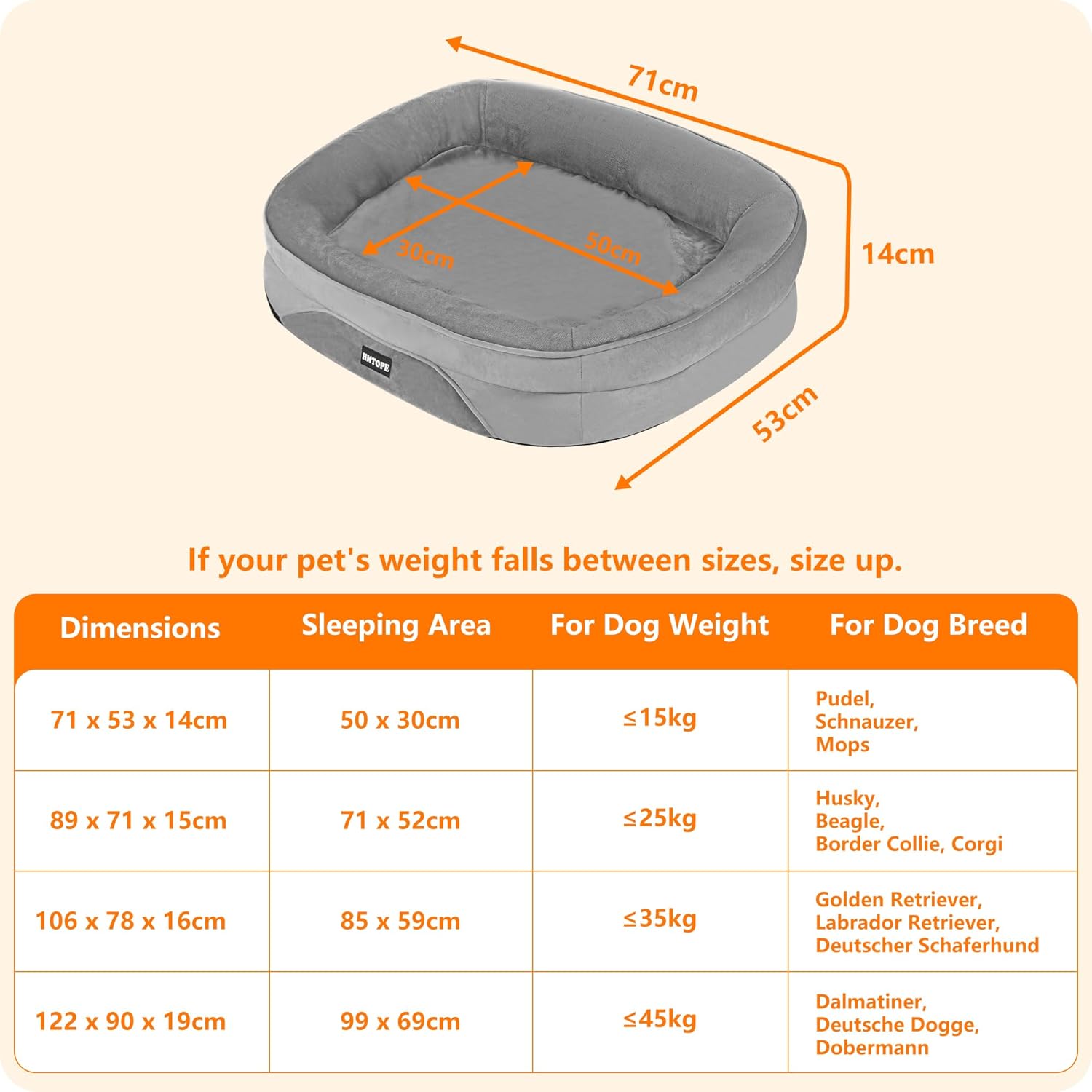 • ДАРЕТЕ МУ ТОПЛО ГНЕЗДО: Предлагаме ви 4 размера (71 см / 89 см / 106 см / 122 см), от които да избирате. Моля, измерете кучето си преди покупка, за да можете да закупите правилния размер. Или се свържете с нас, ние ще изберем правилния препоръчителен размер за вас.