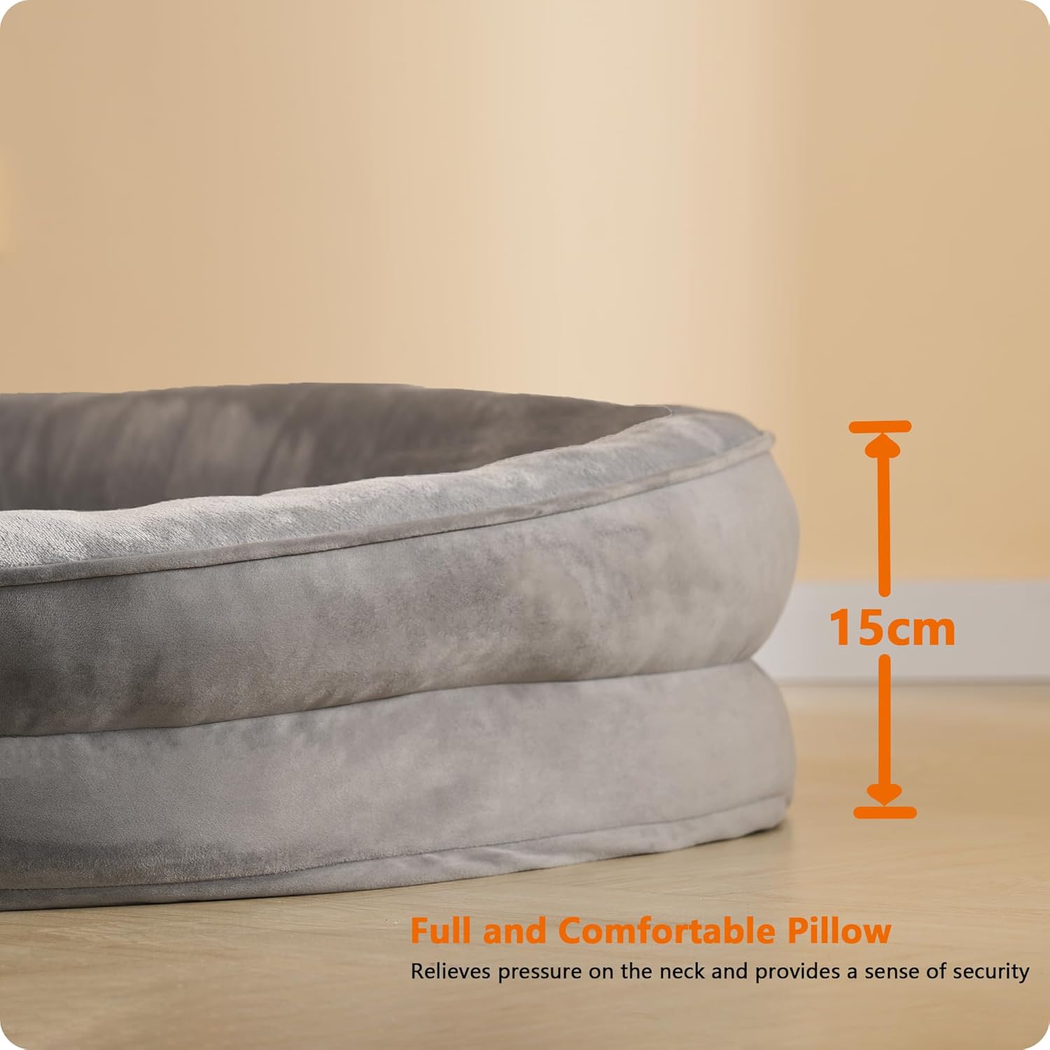 • ПО-ДОБЪР ДИЗАЙН Меката и удобна PP памучна подложка обгръща целия кръг, за да предпази врата на вашия домашен любимец и да осигури безопасно и удобно място за почивка. Външната страна е изработена от кадифе, вътрешната е изработена от фланелена смес, която е мека и удобна и отговаря на предпочитанията на вашето куче. Точковата пластмасова основа има противоплъзгаща функция, така че диванът да не се хлъзга и да е по-безопасен.