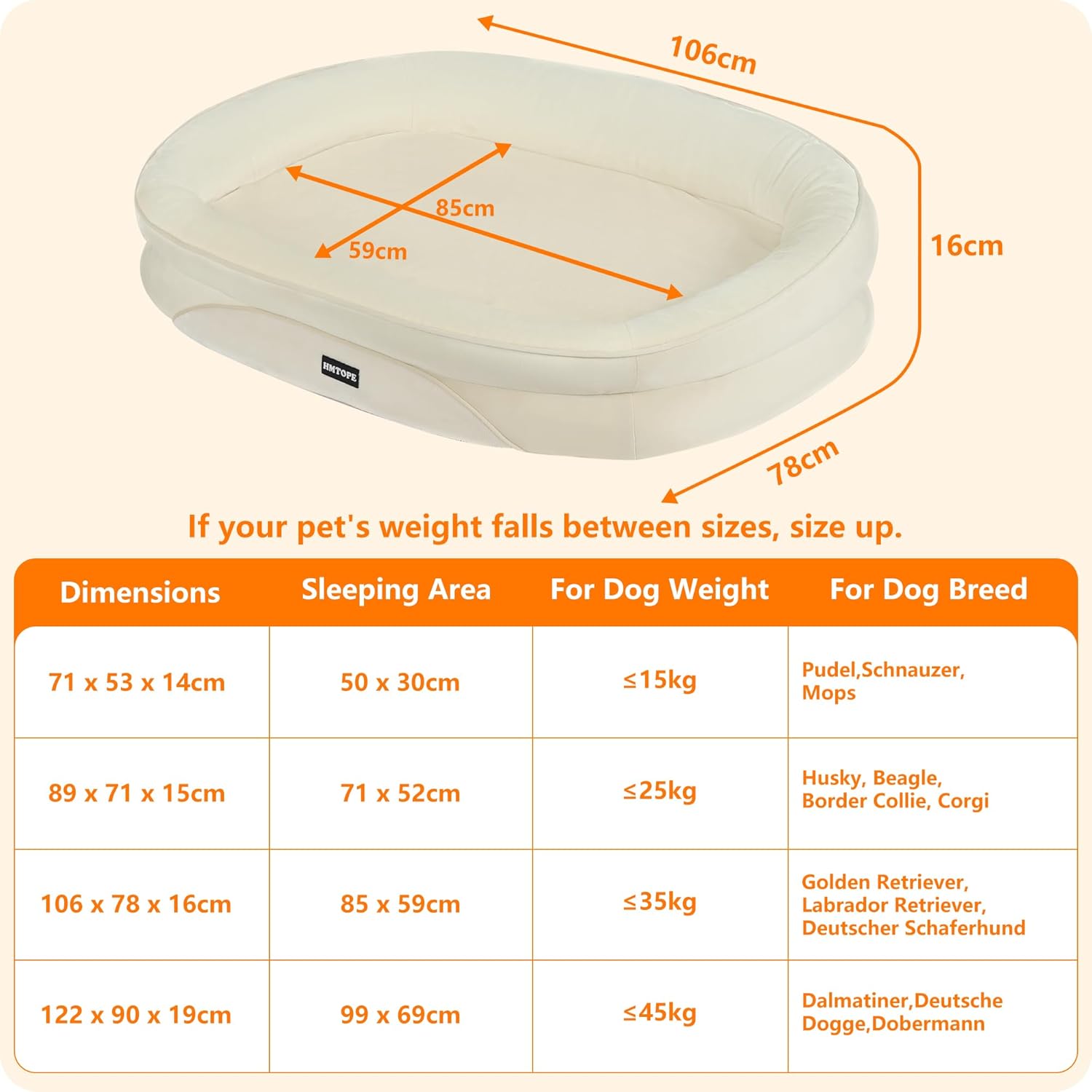 Ортопедично легло за кучета, диван за кучета, четиристранна възглавница, неплъзгаща се долна страна, кошница за кучета, сваляща се и може да се пере, средни кучета, големи кучета, 106 x 79 x 17 см, бежово