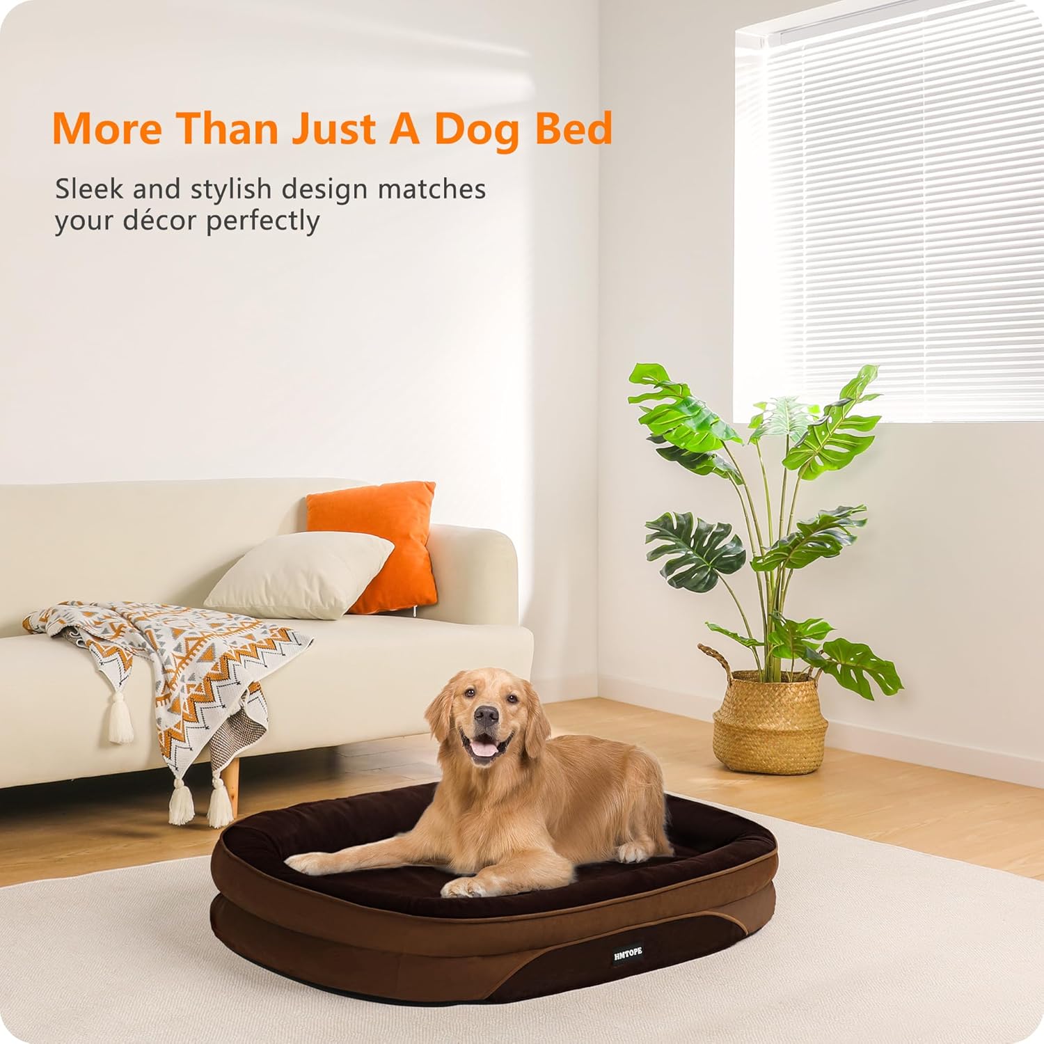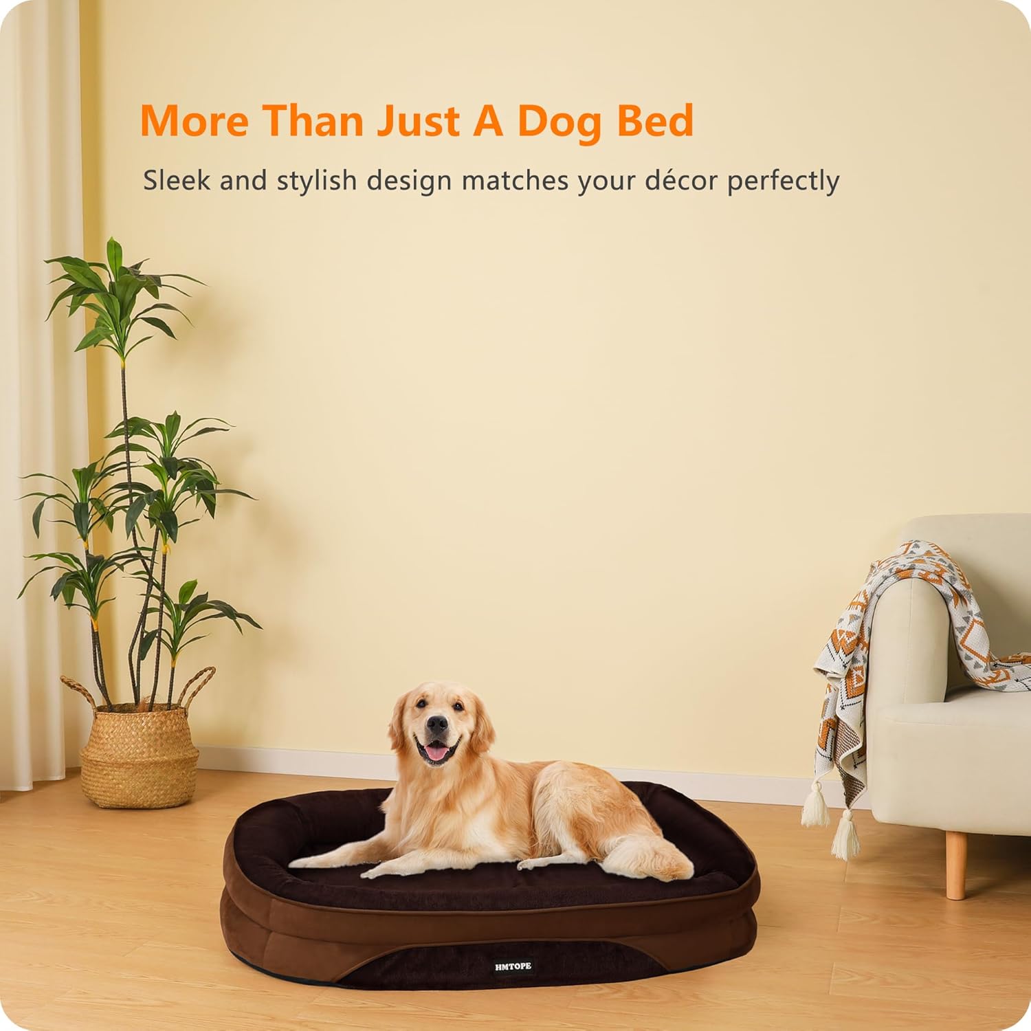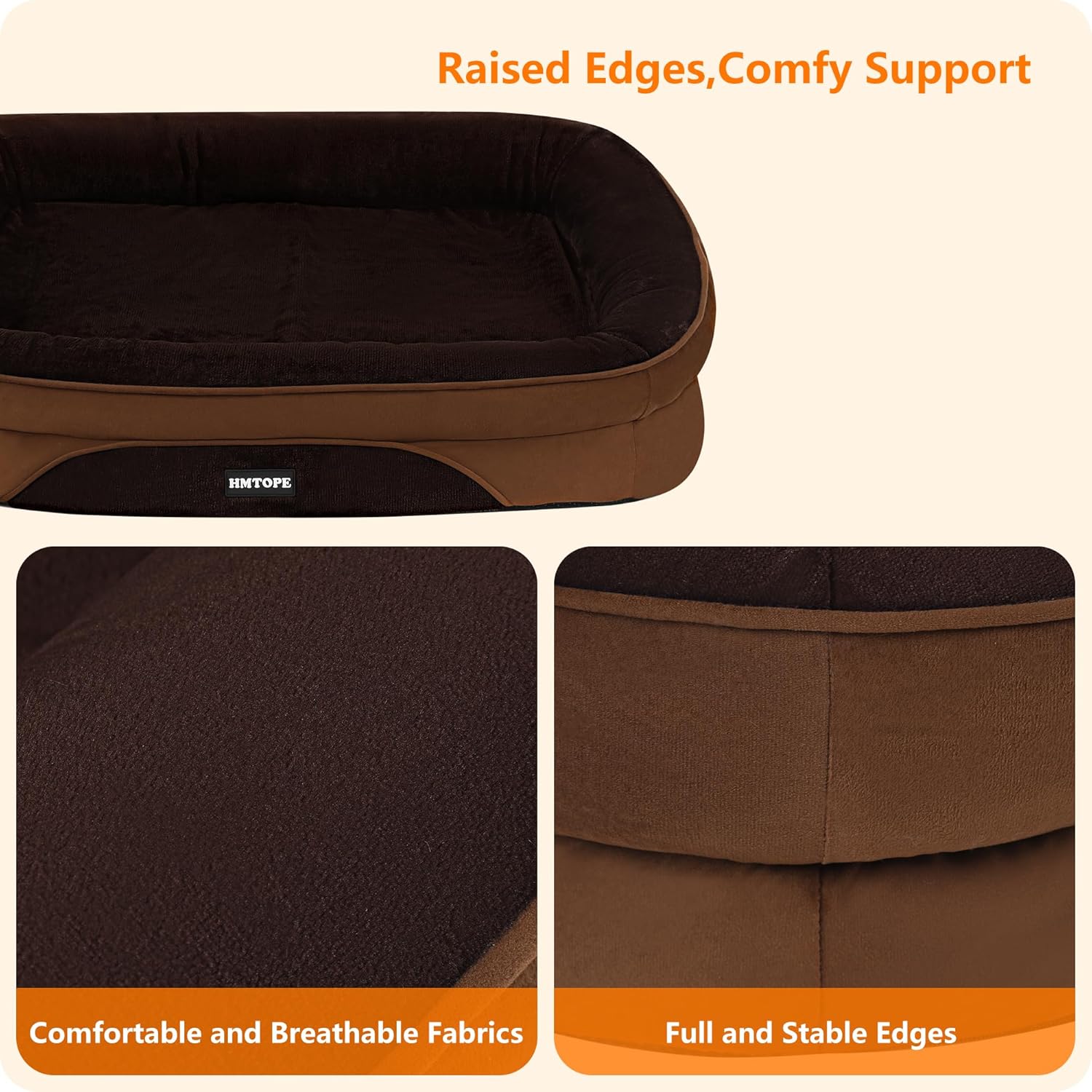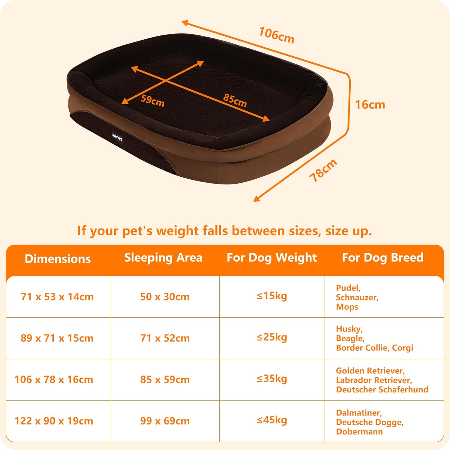 Ортопедично легло за кучета, диван за кучета, четиристранна възглавница, неплъзгаща се долна страна, кошница за кучета, сваляща се и може да се пере, средни кучета, големи кучета, 106 x 79 x 17 см, кафяво