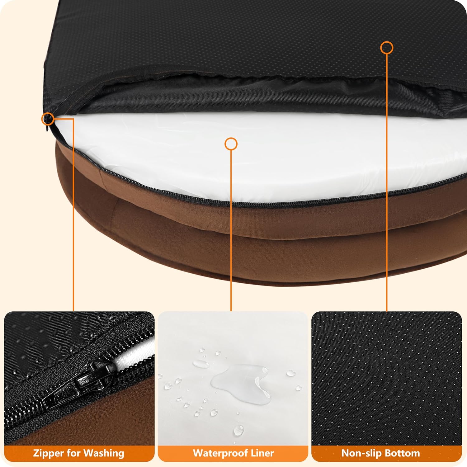 • ВОДОУСТОЙЧИВА ВЪТРЕШНА ПОДПЛАТА ЗА ИЗДРЪЖЛИВОСТ: Интелигентната и напълно водоустойчива вътрешна подплата на нашето кучешко легло от пяна тип „картон за яйца“ е переща се и предпазва пяната от урина на домашни любимци, инциденти, мръсотия и прах. Това гарантира, че леглото ще остане в отлично състояние, дори ако кучето ви се изцапа малко.