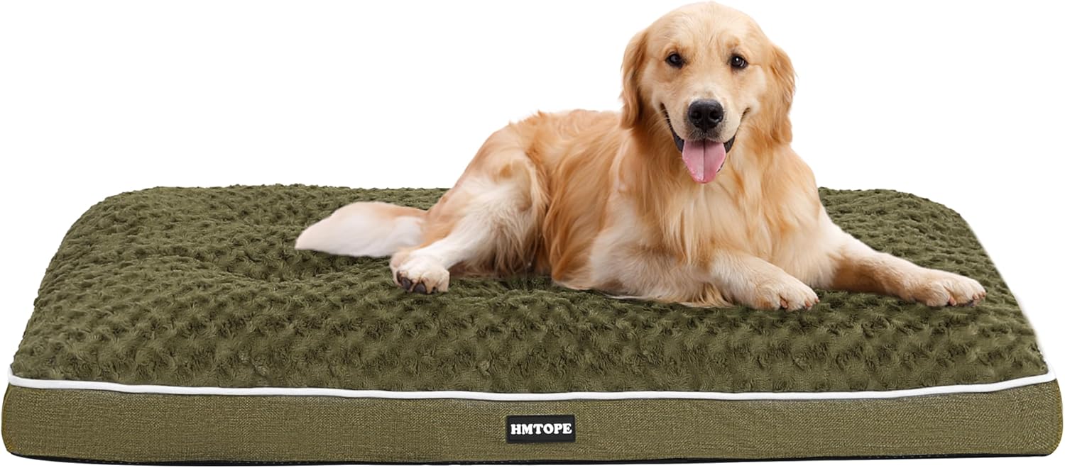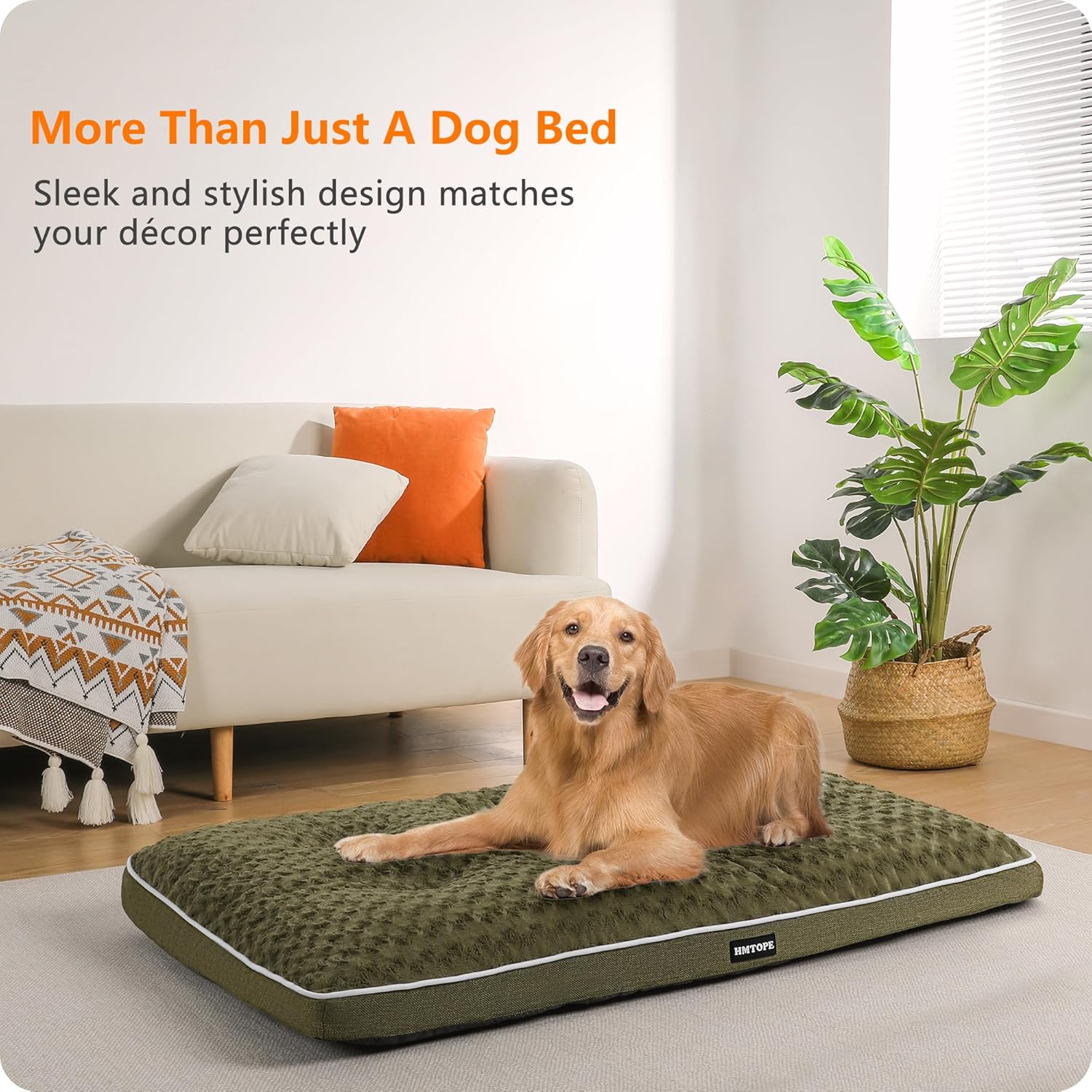 Ортопедично легло за кучета, двуетажна постелка за кучета, миеща се възглавница за кучета, подвижна кошница за кучета, 105 см за средни кучета, маслинено зелено