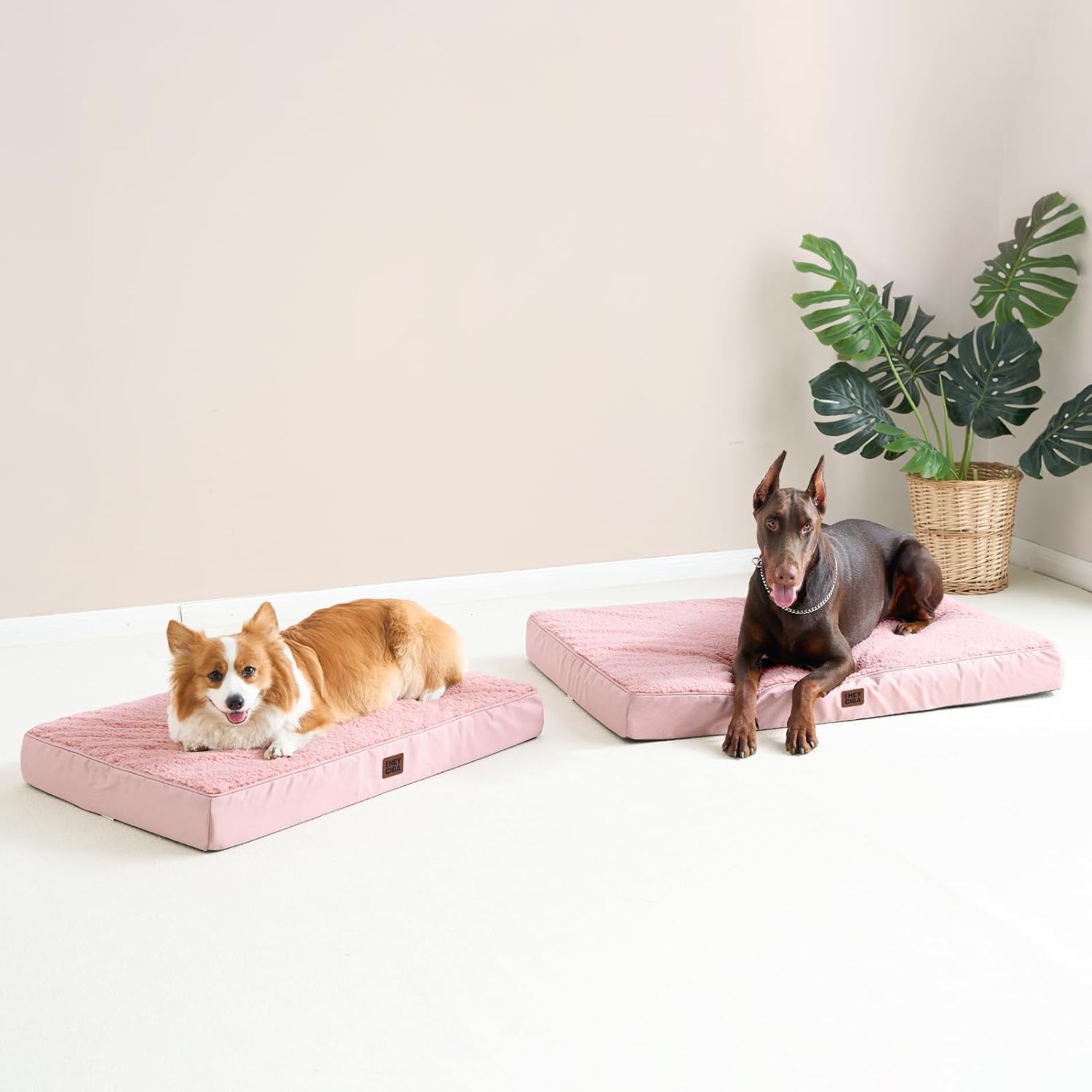 Ортопедично легло за кучета EHEYCIGA XXL за големи кучета 120 x 74 x 9 см, пухкава постелка за клетка, която може да се пере, тъмно розова