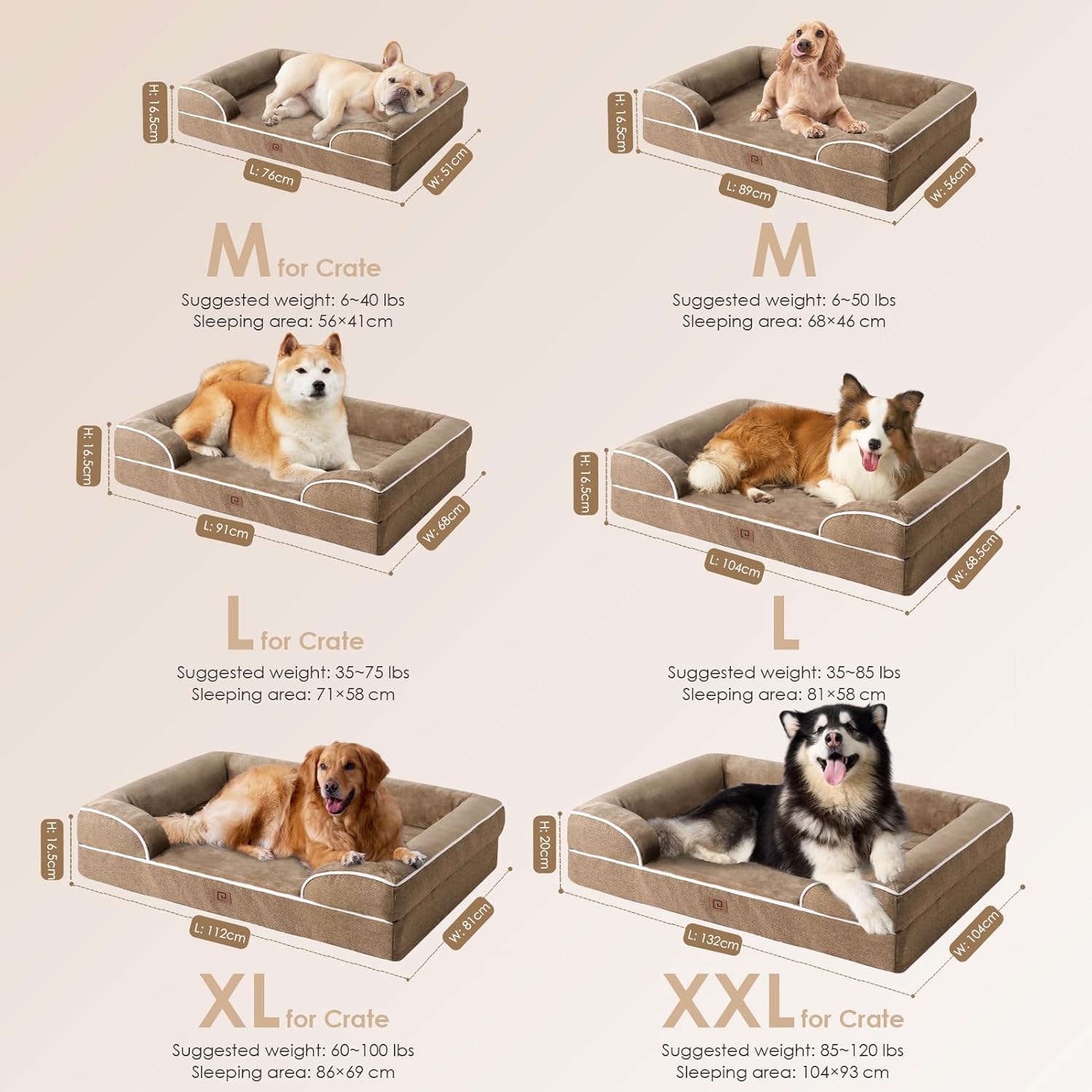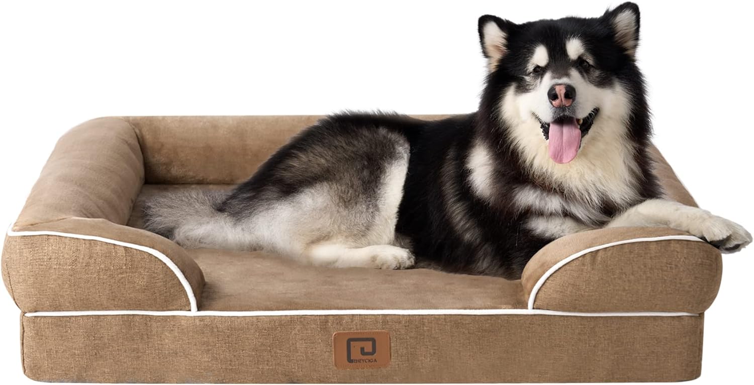 Ортопедично легло за кучета EHEYCIGA за големи кучета, кошница от мемори пяна за средни кучета, диван за кучета, който може да се пере, водоустойчив, неплъзгащ се, диван за кучета с висок ръб