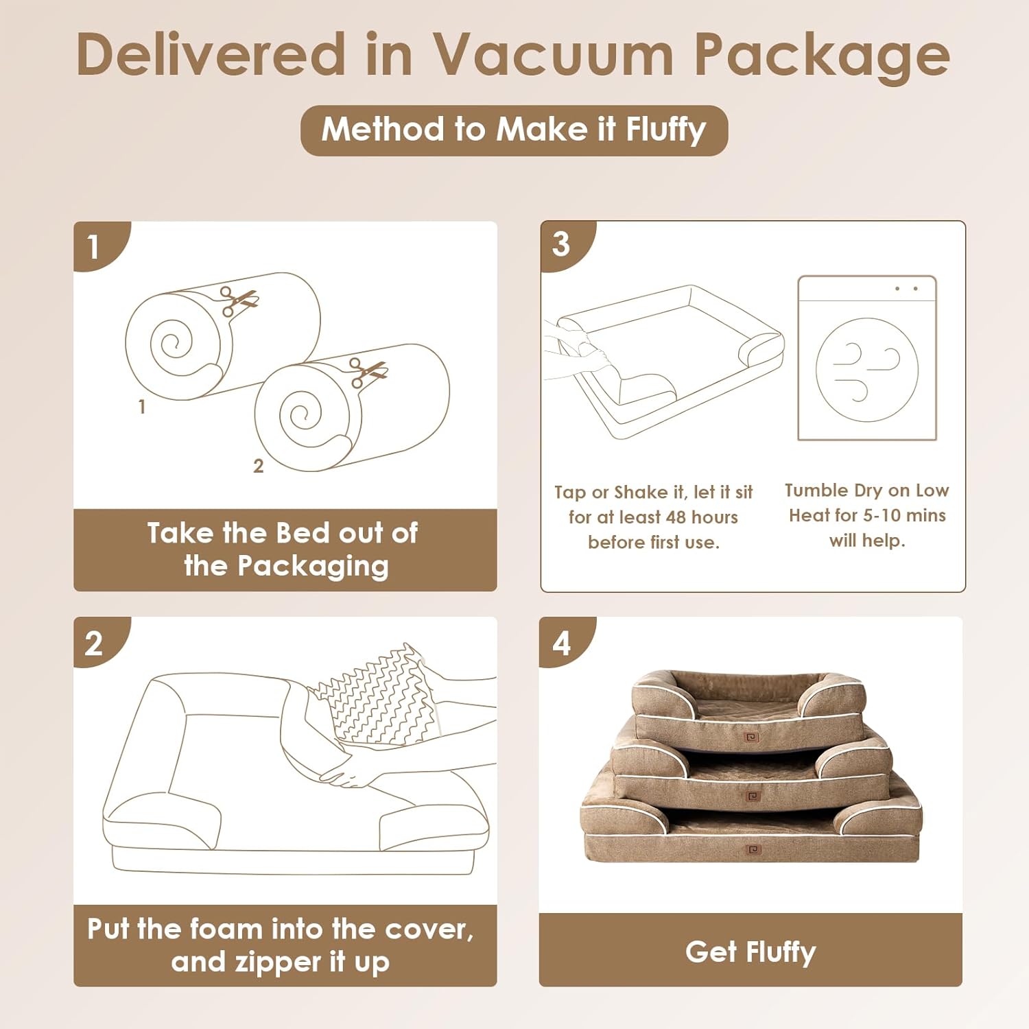 • Лесно почистване: Кучешкият диван има сваляем калъф, който може лесно да се сваля с ципа и да се пере. След като извадите вътрешната гъба, можете да изперете останалата част в пералнята. Моля, оставете го за 50 часа след изваждане от торбичката, за да възстанови истинската си форма и дебелина.