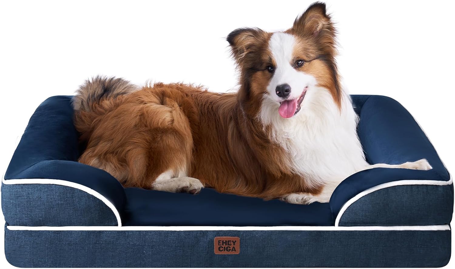 Ортопедично легло за кучета EHEYCIGA за големи кучета, кошница от мемори пяна за средни кучета, диван за кучета, който може да се пере, водоустойчив, неплъзгащ се, диван за кучета с висок ръб