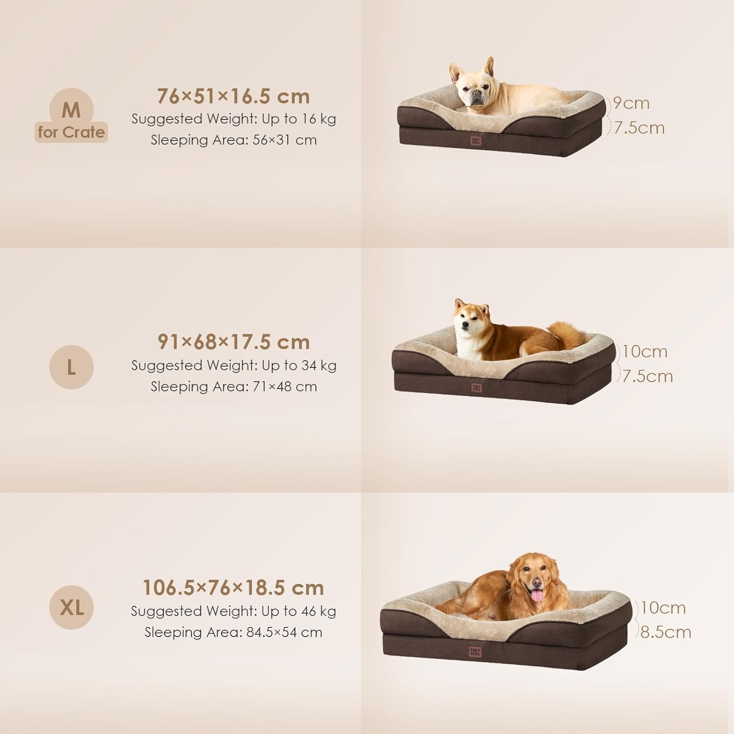 Ортопедично легло за кучета EHEYCIGA за малки кучета, 76 x 51 x 16,5 см, кошница за кучета от мемори пяна, която може да се пере и е водоустойчива, с 4 ръба, неплъзгащ се диван за кучета, кафяво