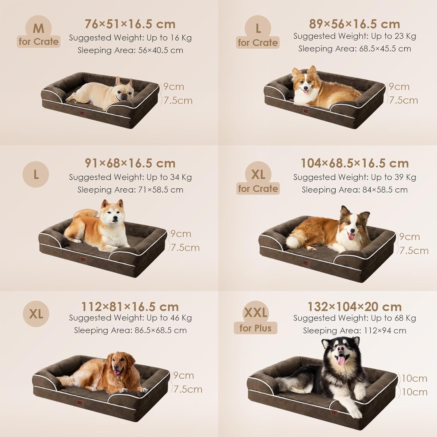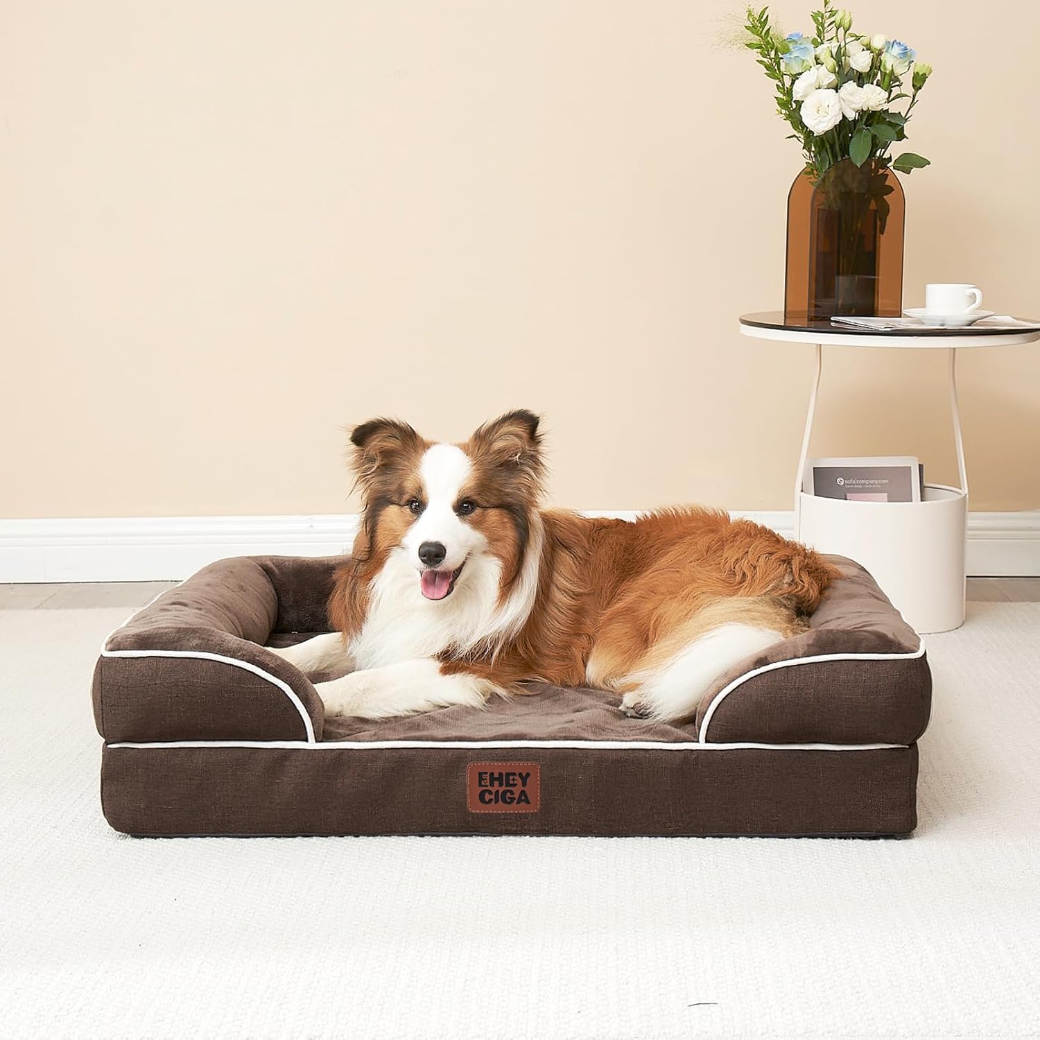 Ортопедично легло за кучета EHEYCIGA за малки кучета, кошница от мемори пяна за средни кучета, диван за кучета, който може да се пере, водоустойчив, неплъзгащ се, диван за кучета с висок ръб