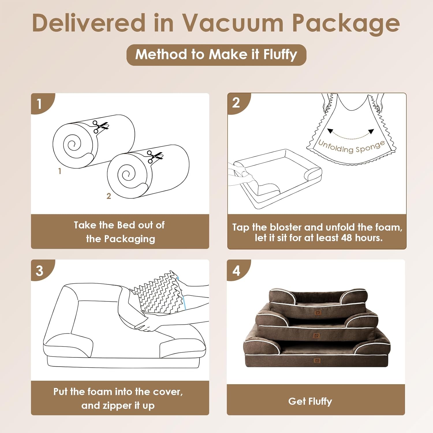 • Лесно почистване: Кучешкият диван има сваляем калъф, който може лесно да се сваля с ципа и да се пере. След като извадите вътрешната гъба, можете да изперете останалата част в пералнята. Моля, оставете го за 50 часа след изваждане от торбичката, за да възстанови истинската си форма и дебелина.