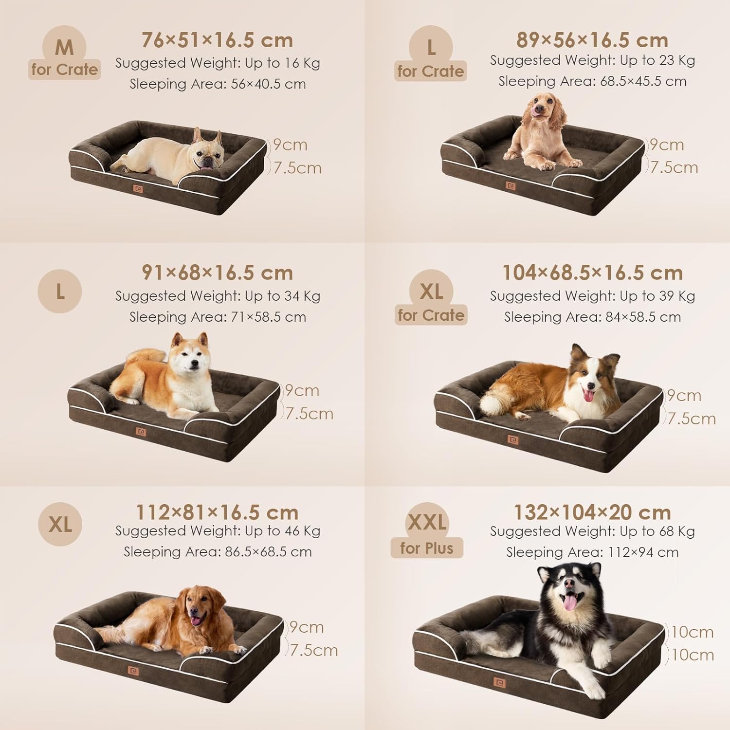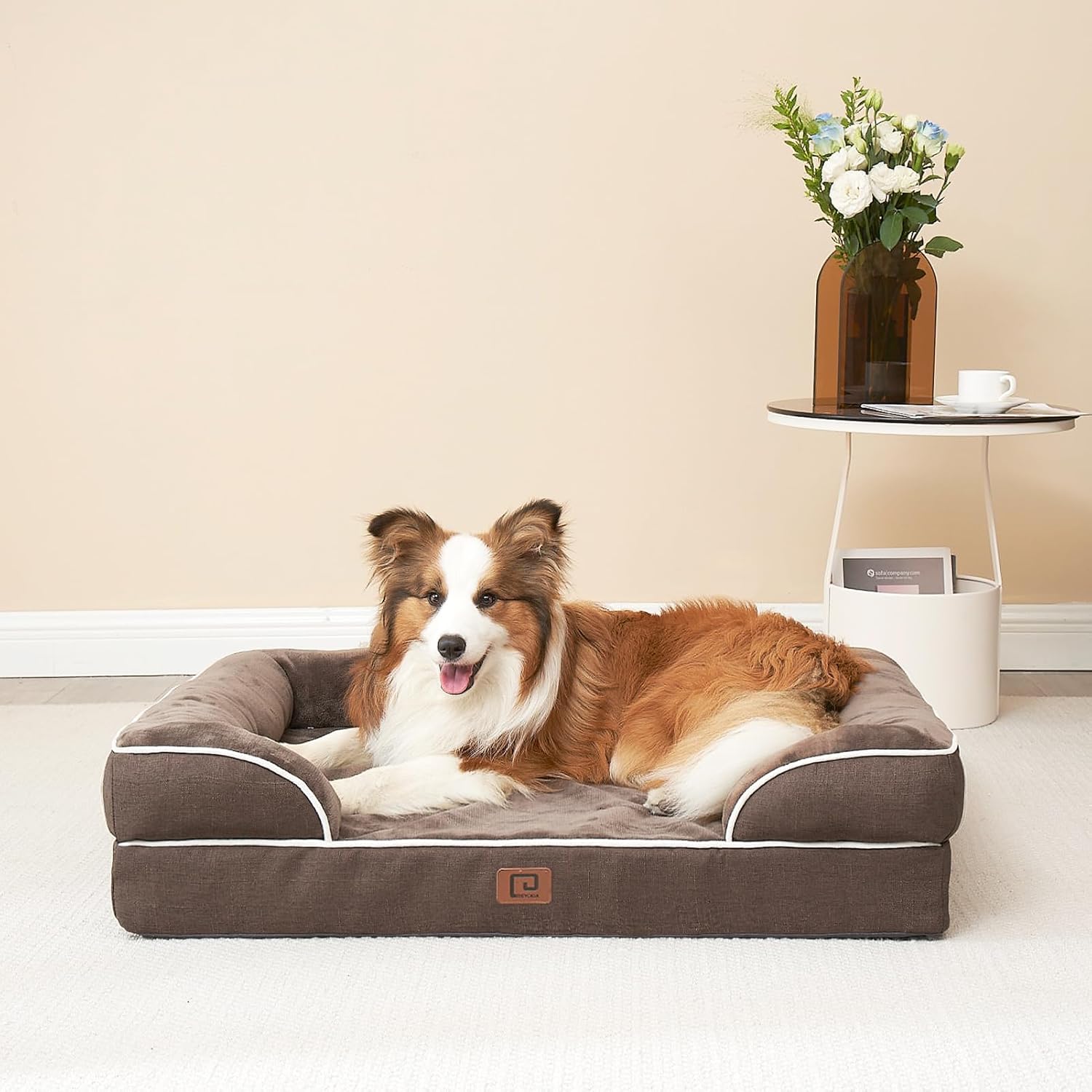 Ортопедично легло за кучета EHEYCIGA за малки кучета, кошница от мемори пяна за средни кучета, диван за кучета, който може да се пере, водоустойчив, неплъзгащ се, диван за кучета с висок ръб