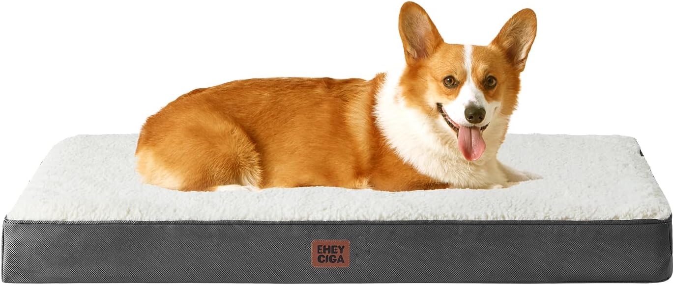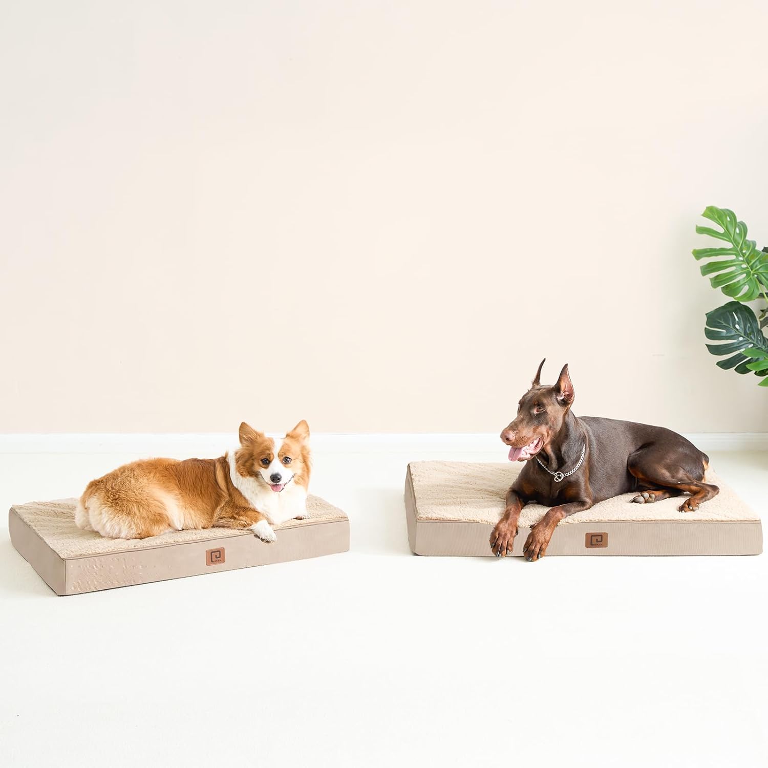 Ортопедично легло за кучета EHEYCIGA за средни кучета 89 x 58 x 9 см, пухкава постелка за клетка, която може да се пере, каки