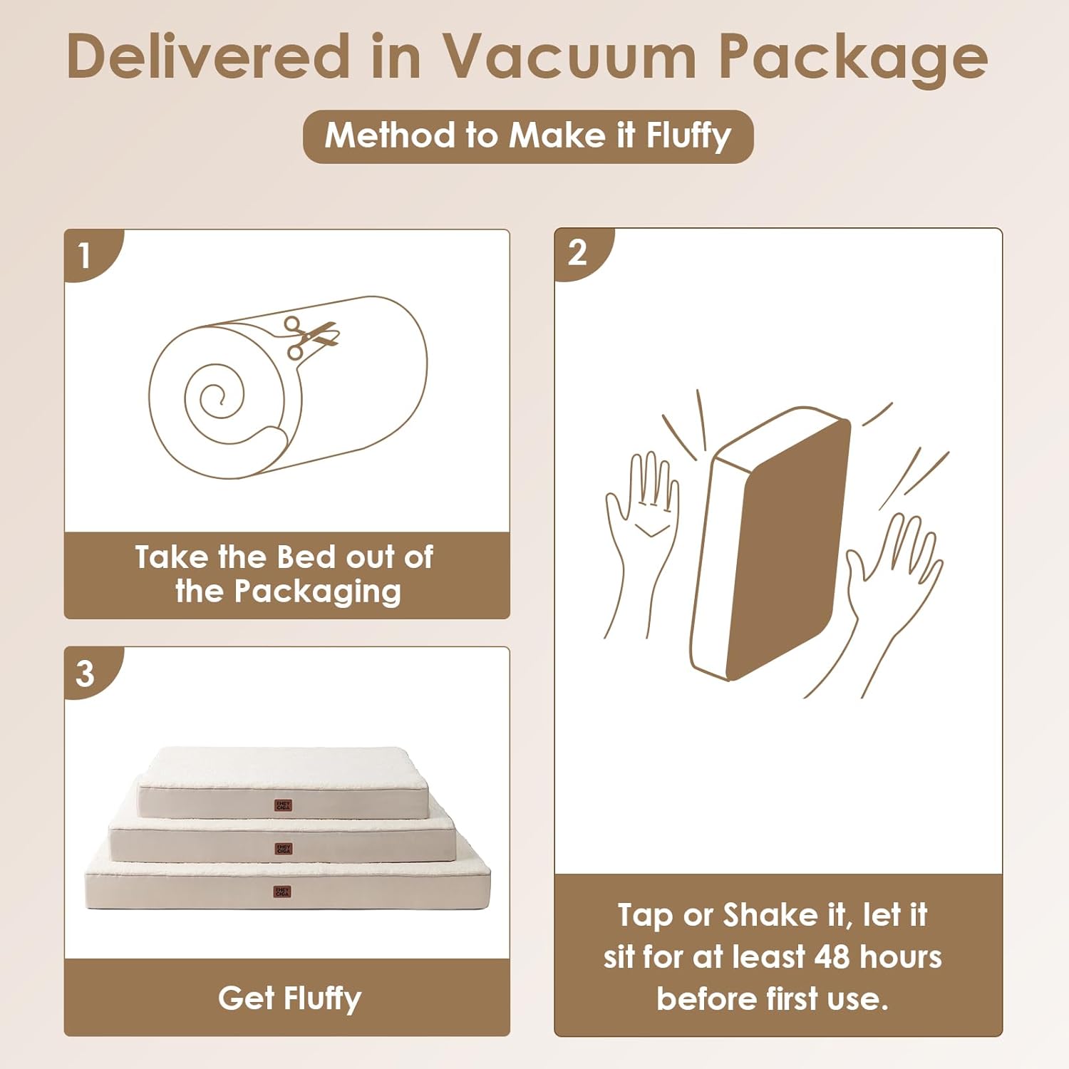 • ВНИМАНИЕ: Отворете опаковката веднага щом я получите, за да направите леглото за кучета бързо пухкаво. Ако е необходимо, можете също да потупате този дебел матрак за кучета. Освен това, ако имате въпроси или не сте доволни, можете да се свържете с нас по всяко време.