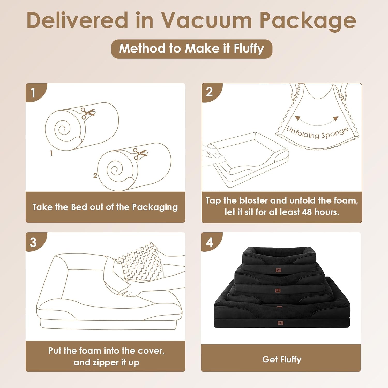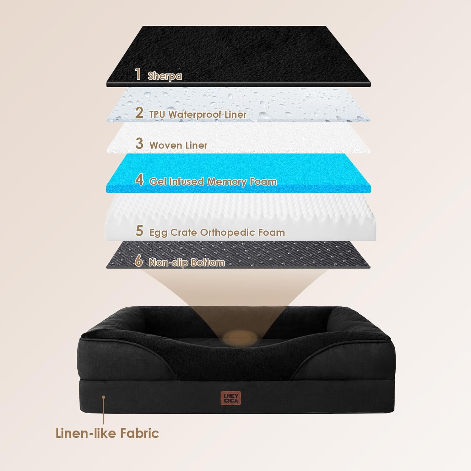 Ортопедично легло за кучета EHEYCIGA, за средни кучета, 91 x 68 x 17,5 см, кошница за кучета от мемори пяна, която може да се пере и е водоустойчива, с 4 ръба, неплъзгащ се диван за кучета, кушетка за кучета, черно