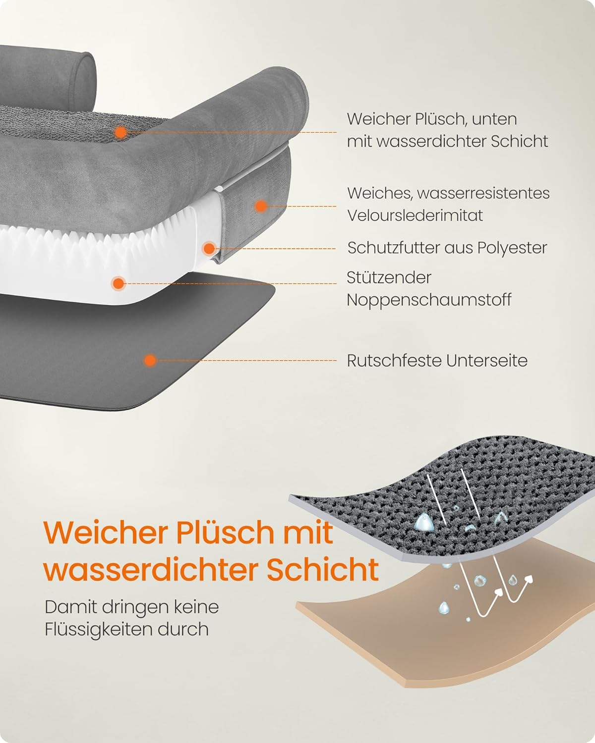 • Неплъзгащо се дъно: За да сте сигурни, че вашият пухкав приятел няма да се подхлъзне неволно през хола, този диван за кучета е оборудван с неплъзгащо се дъно, така че да се чувства безопасно при влизане и излизане.