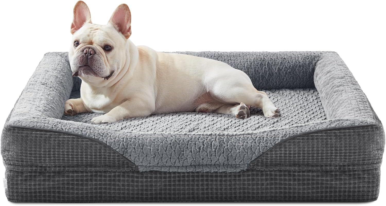 Ортопедично легло за кучета FURTIME, за средни кучета, кошница за кучета от мемори пяна, за големи кучета, сваляща се и може да се пере, неплъзгаща се кошница за кучета, диван за кучета с висок ръб, 89 x 64 x 18 см