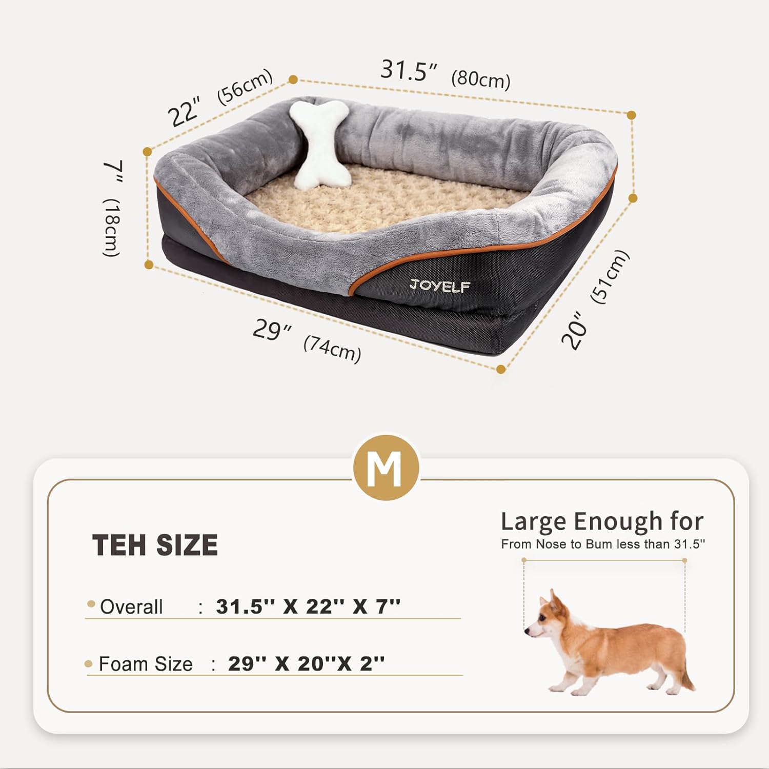 Ортопедично легло за кучета JOYELF за средно големи размери, изработено от мемори пяна, и диван за кучета с подвижен калъф, който може да се пере, и скърцаща играчка като подарък.