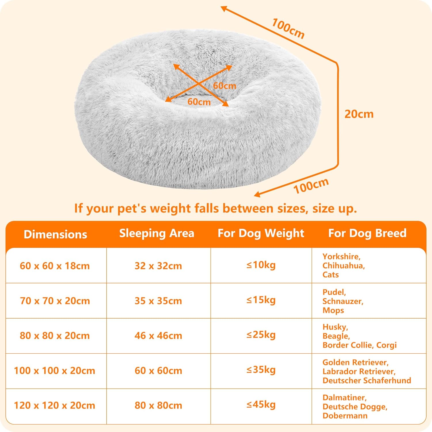 • Противоплъзгащ дизайн: Нашето кръгло легло за кучета е с красиви естествени цветове и здрави шевове в долната част. Дъното на удобното легло за домашни любимци е също водоустойчиво, устойчиво на петна и неплъзгащо се, осигурявайки чиста и суха защита за домашните любимци.