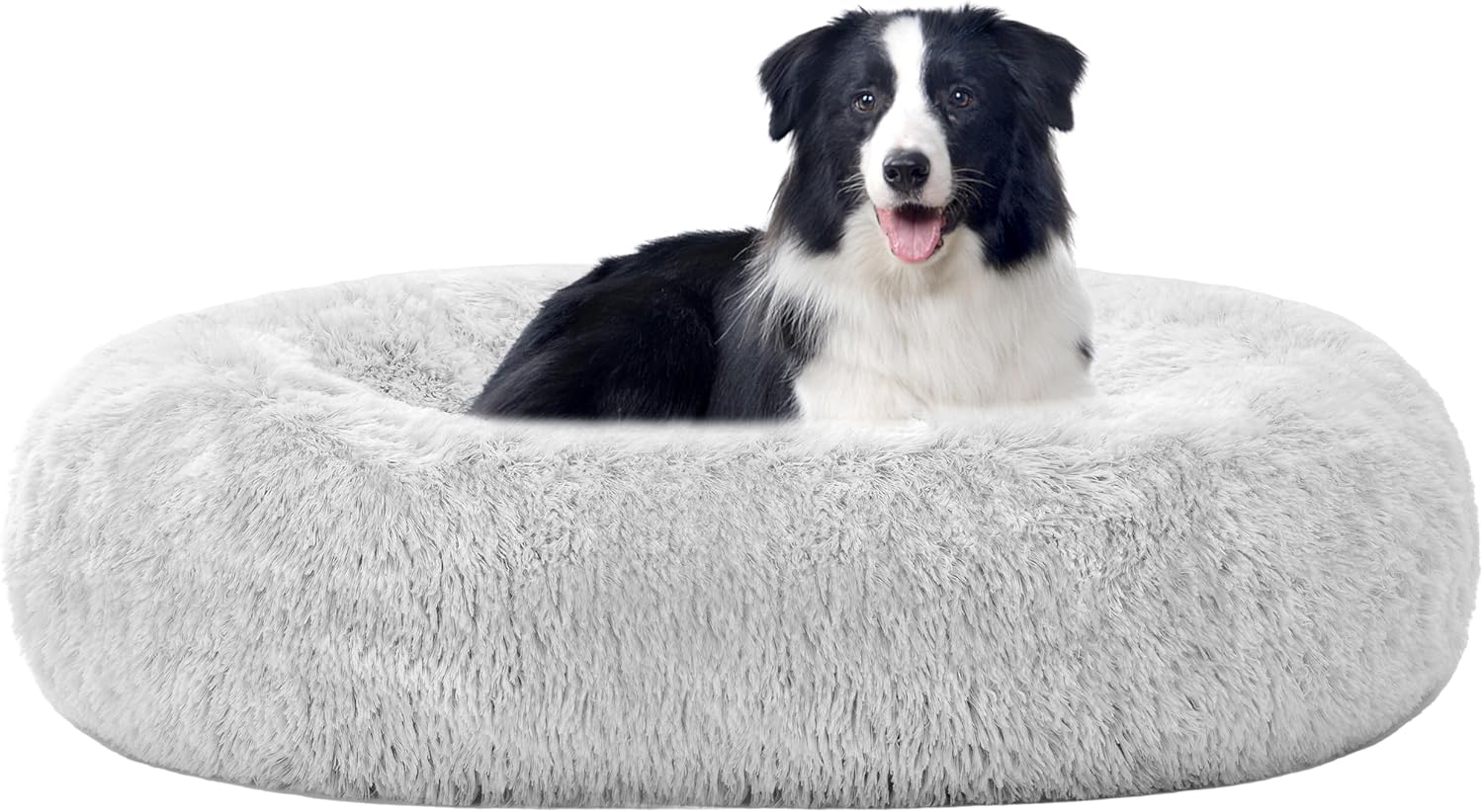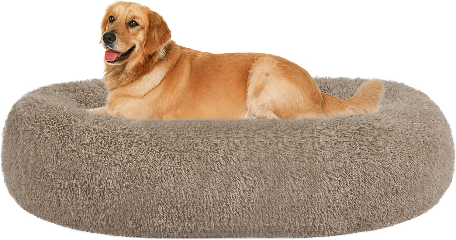 Ортопедично легло за кучета, кръгъл диван за кучета, легло за котки, поничка, кошница за пухкави кучета, може да се пере, диаметър 100 см, светло сиво
