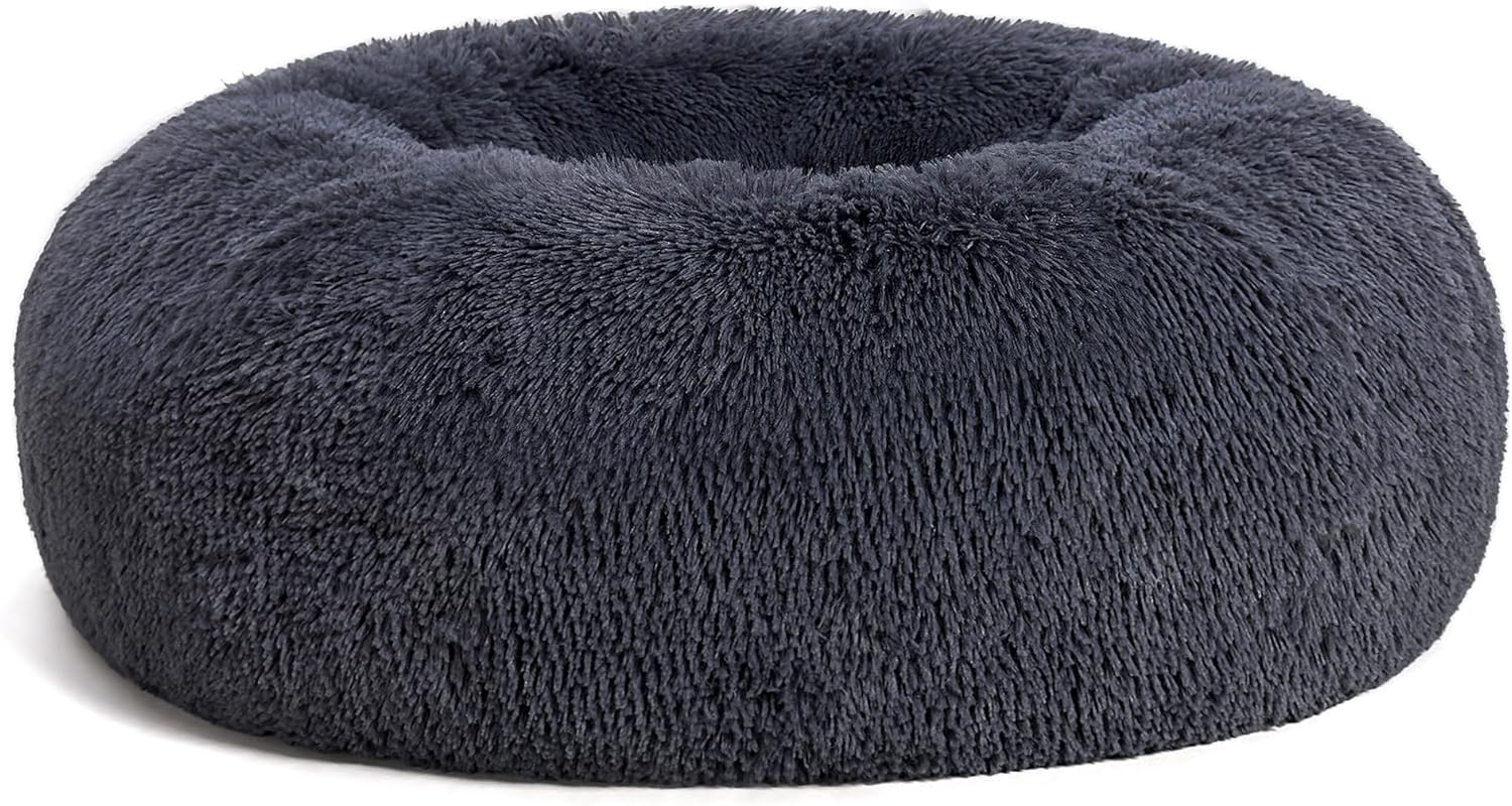 Ортопедично легло за кучета, кръгъл диван за кучета, легло за котки, поничка, кошница за пухкави кучета, може да се пере, диаметър 100 см, тъмносиво