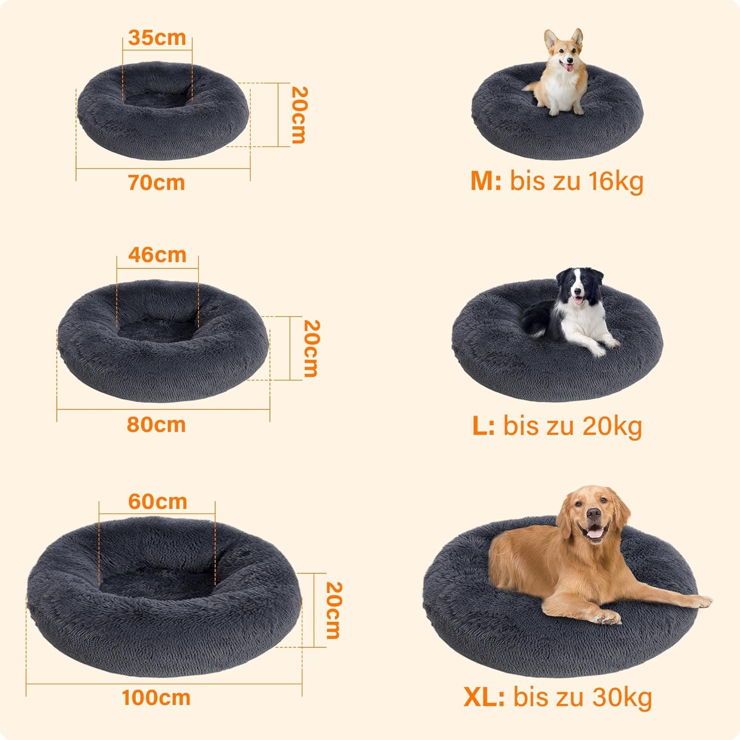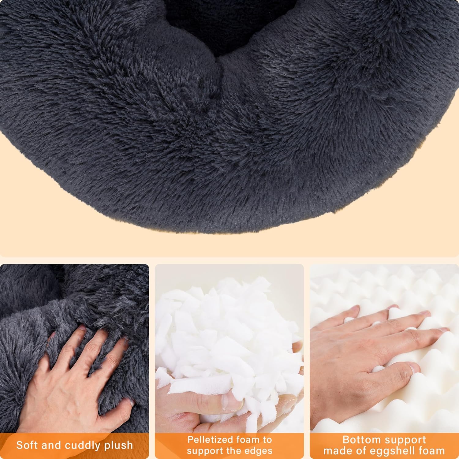 • Противоплъзгащ дизайн: Нашето кръгло легло за кучета е с красиви естествени цветове и здрави шевове в долната част. Дъното на удобното легло за домашни любимци е също водоустойчиво, устойчиво на петна и неплъзгащо се, осигурявайки чиста и суха защита за домашните любимци.