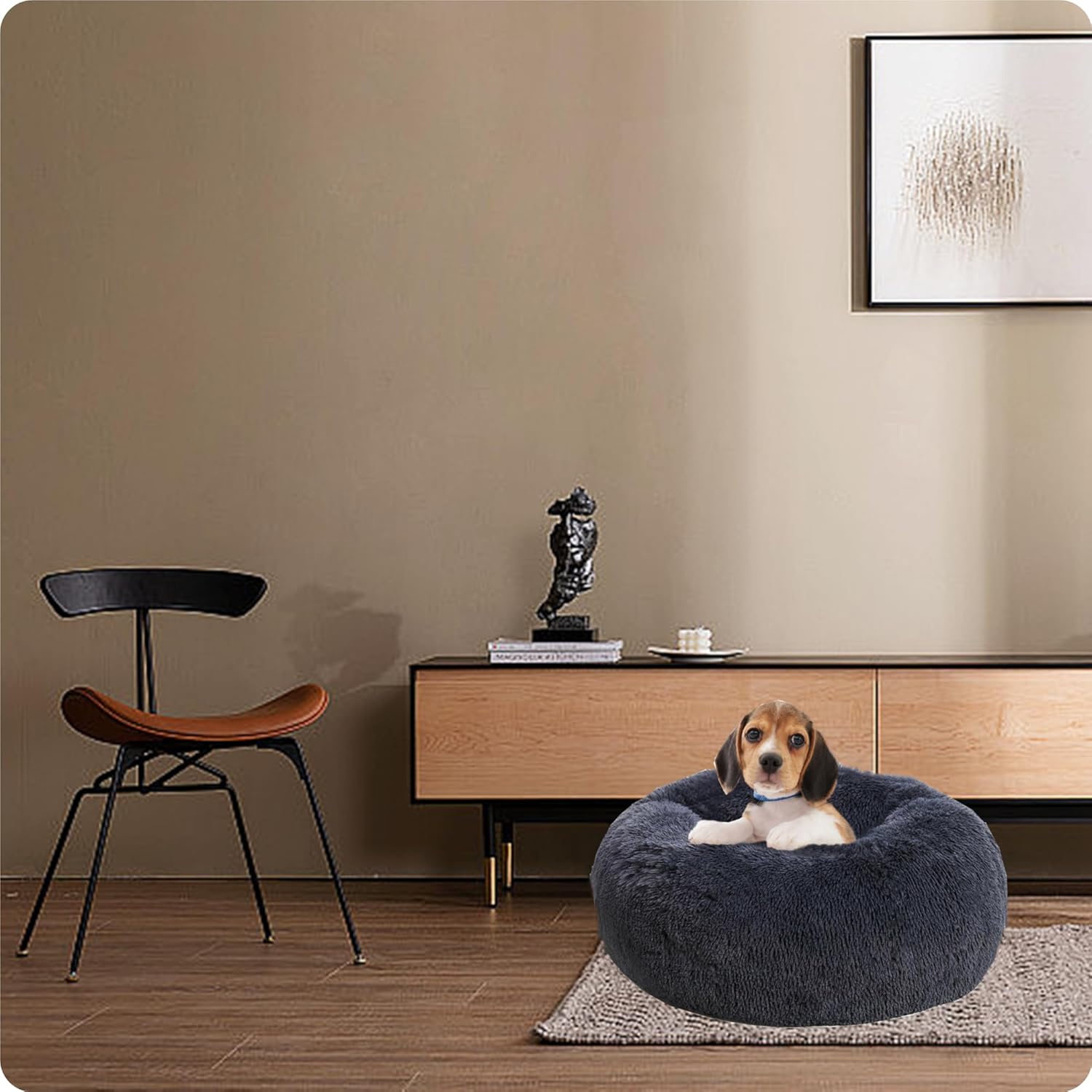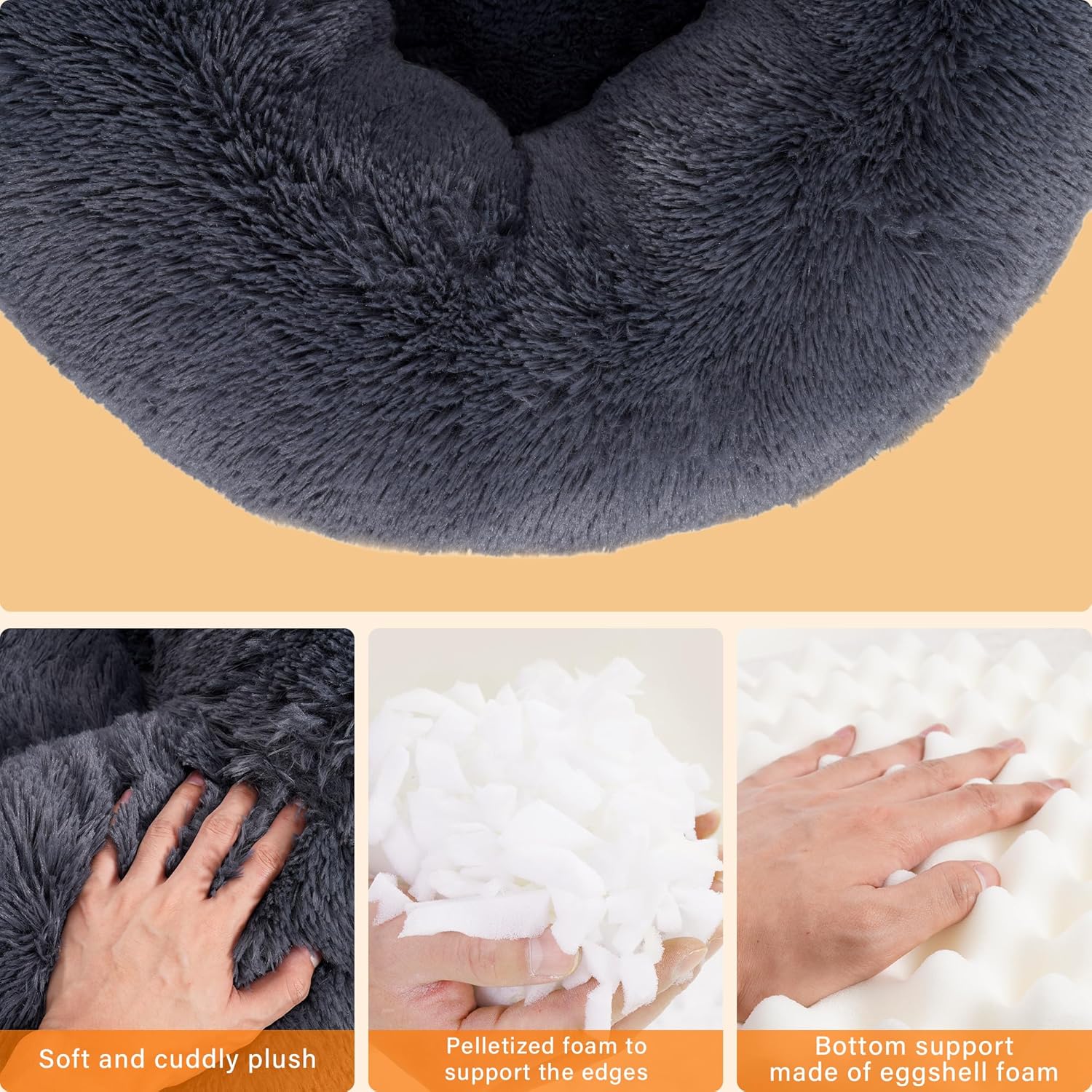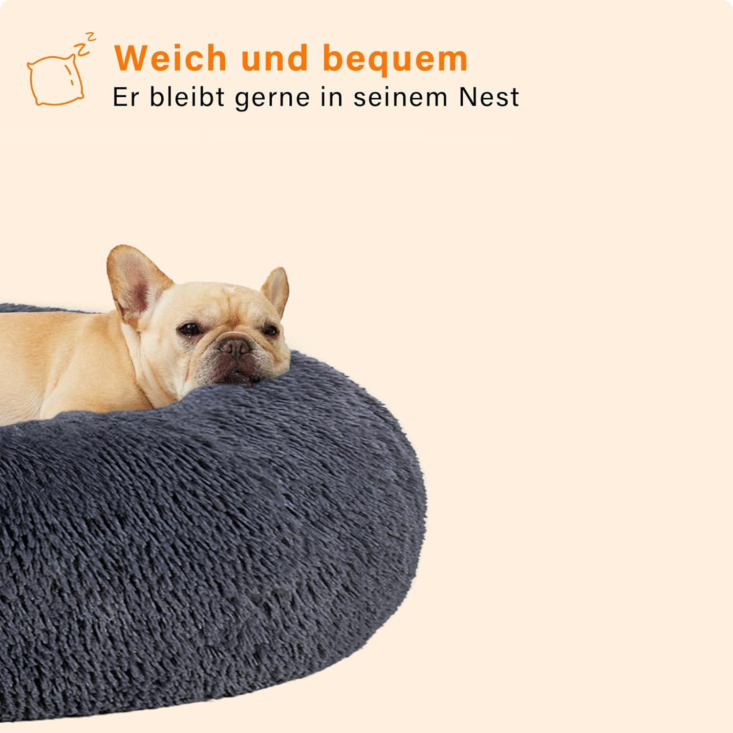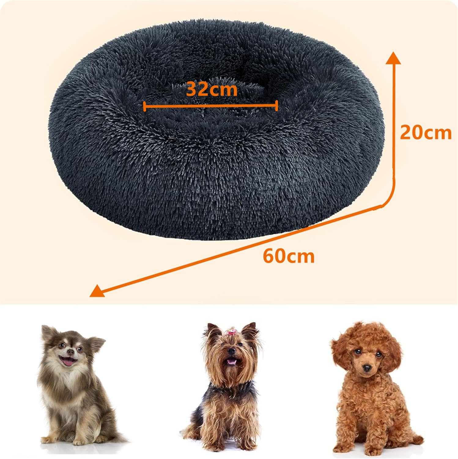 Ортопедично легло за кучета, кръгъл диван за кучета, легло за котки, поничка, кошница за пухкави кучета, може да се пере, диаметър 60 см, тъмносиво